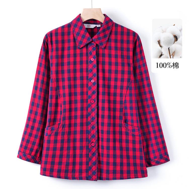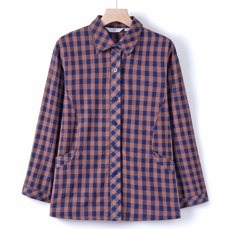 中老年纯棉长袖衬衣女妈妈2024新款格子上衣老年人春秋季全棉衬衫