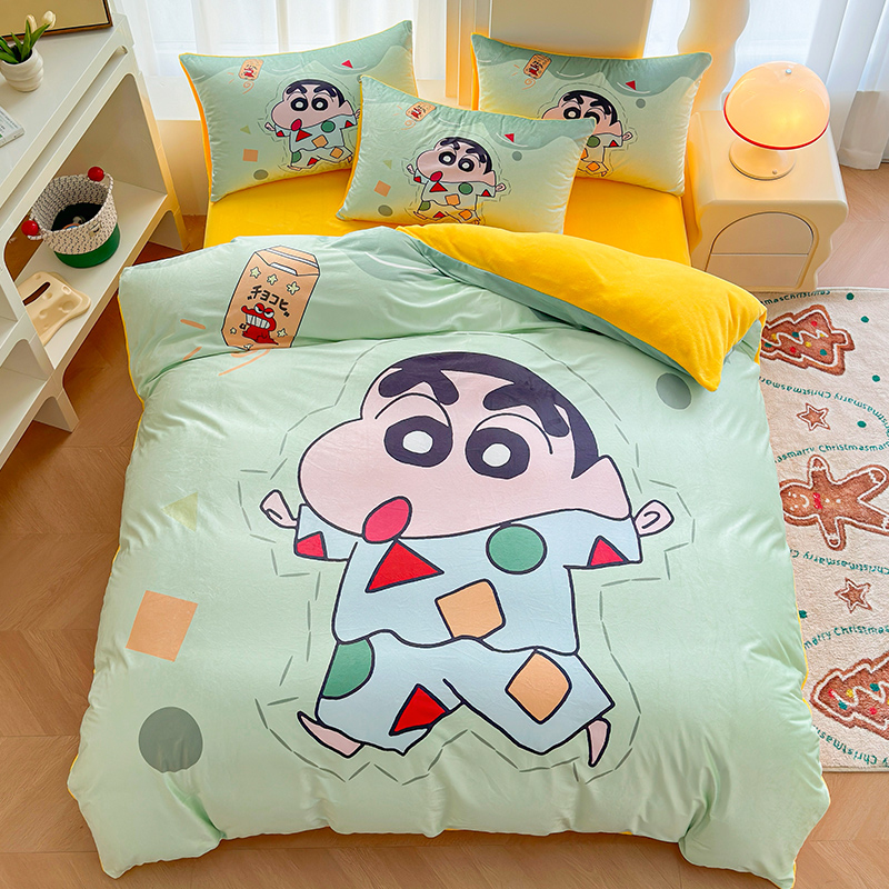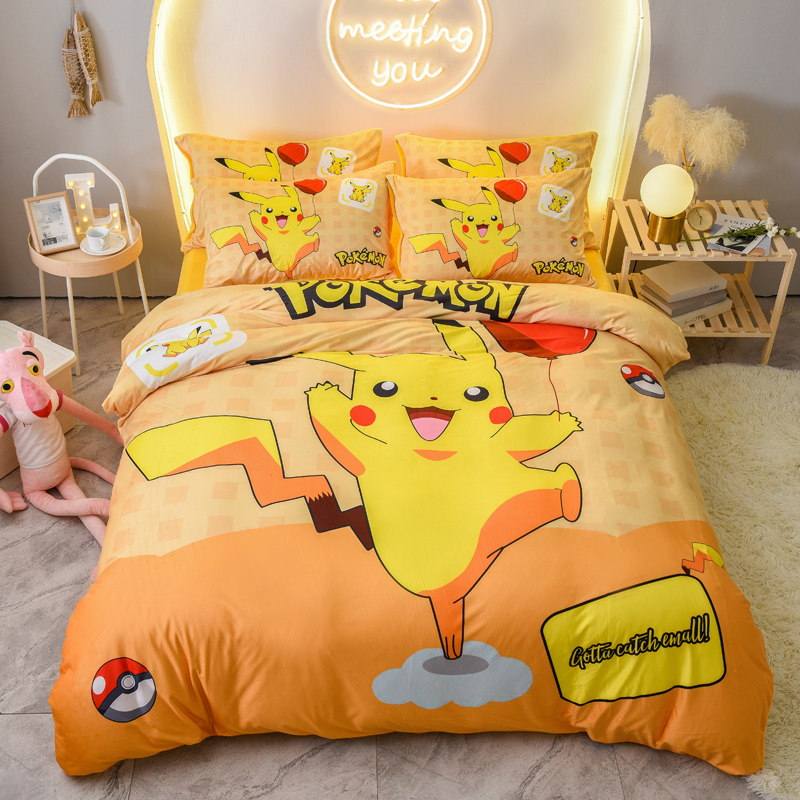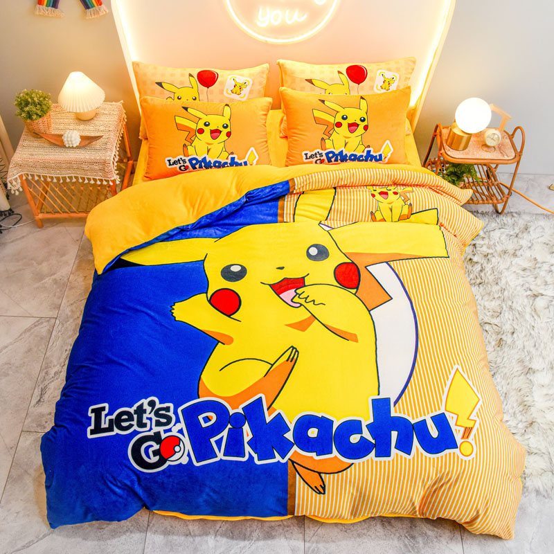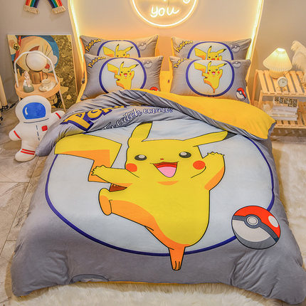 皮卡丘儿童牛奶绒三四件套冬保暖珊瑚绒卡通被套床笠定制0.9m1.35