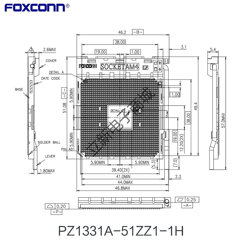 富士康PZ1331A-51ZZ1-1H CPU SOCKET 插座 CPU插槽AM4 座子大锡球