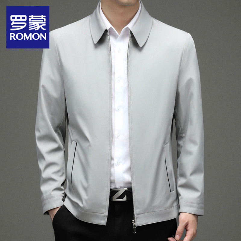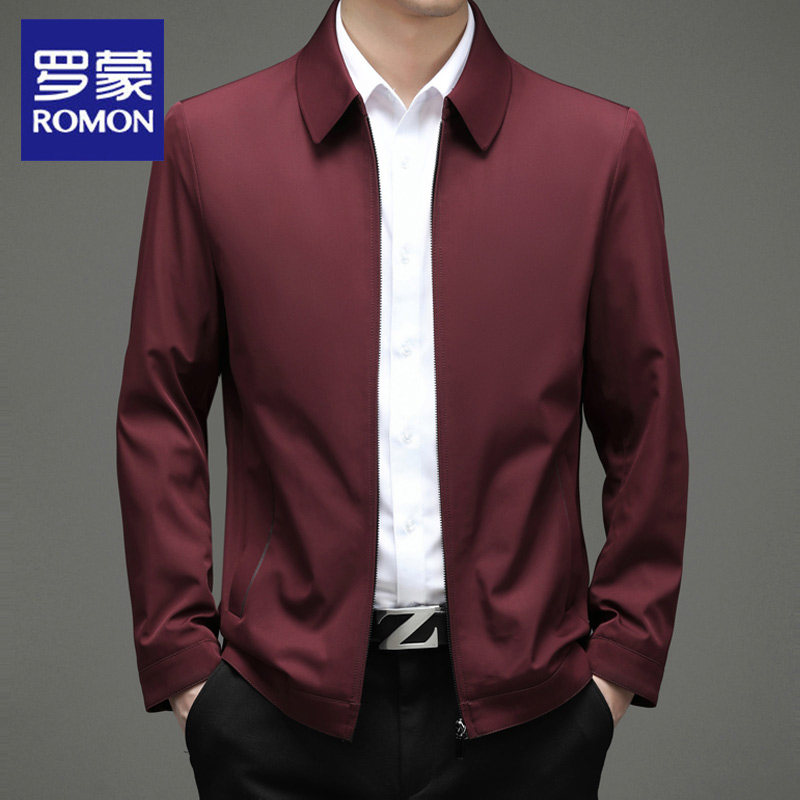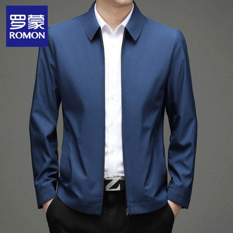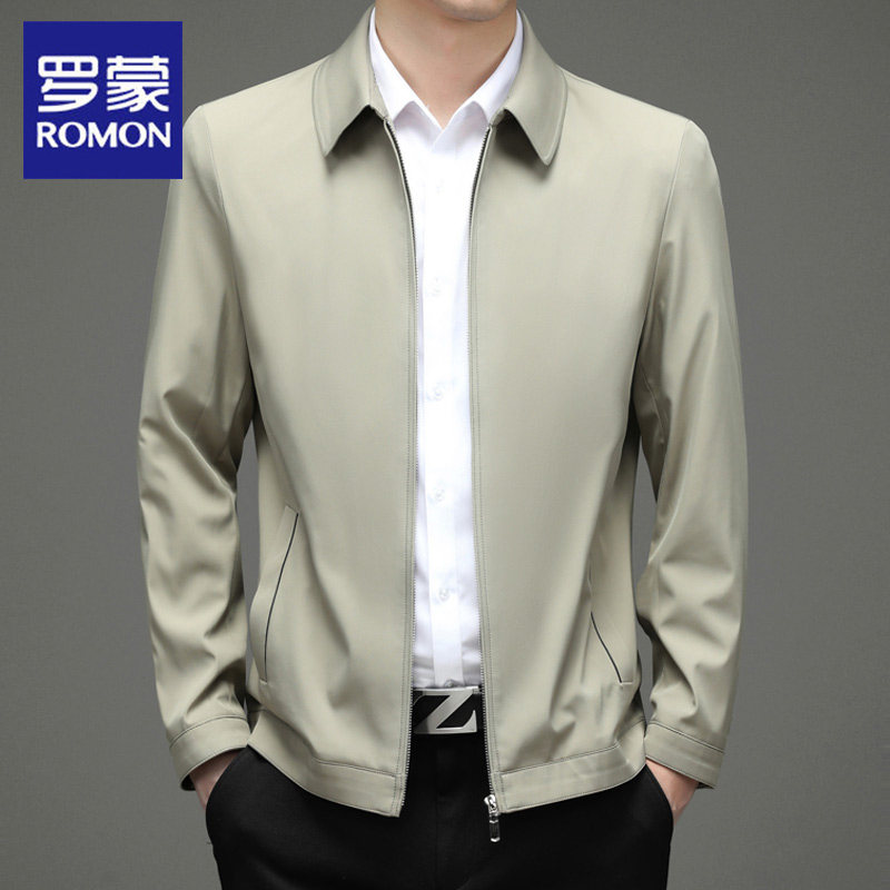 罗蒙夹克男春秋款2024秋季新款商务休闲翻领茄克外套男中老年干部