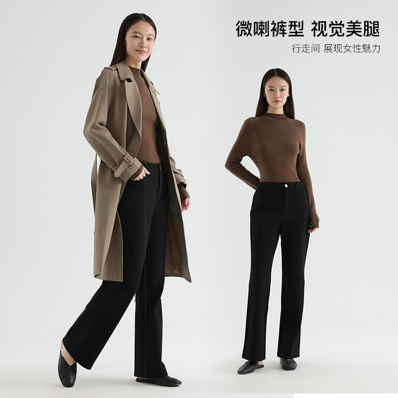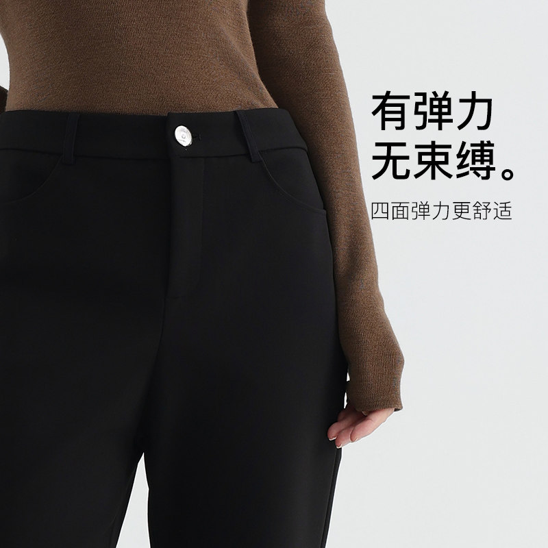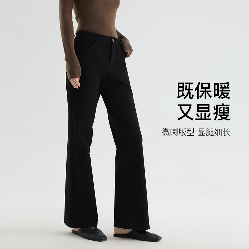 Yifini/易菲黑色显瘦加绒休闲裤女保暖加厚微喇长裤冬季新款