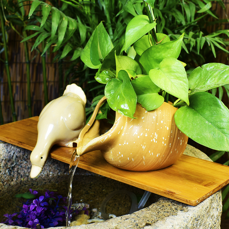 古法养鱼缸陶罐复古流水循环装饰摆饰水培绿植沼泽过滤缺口倒花瓶