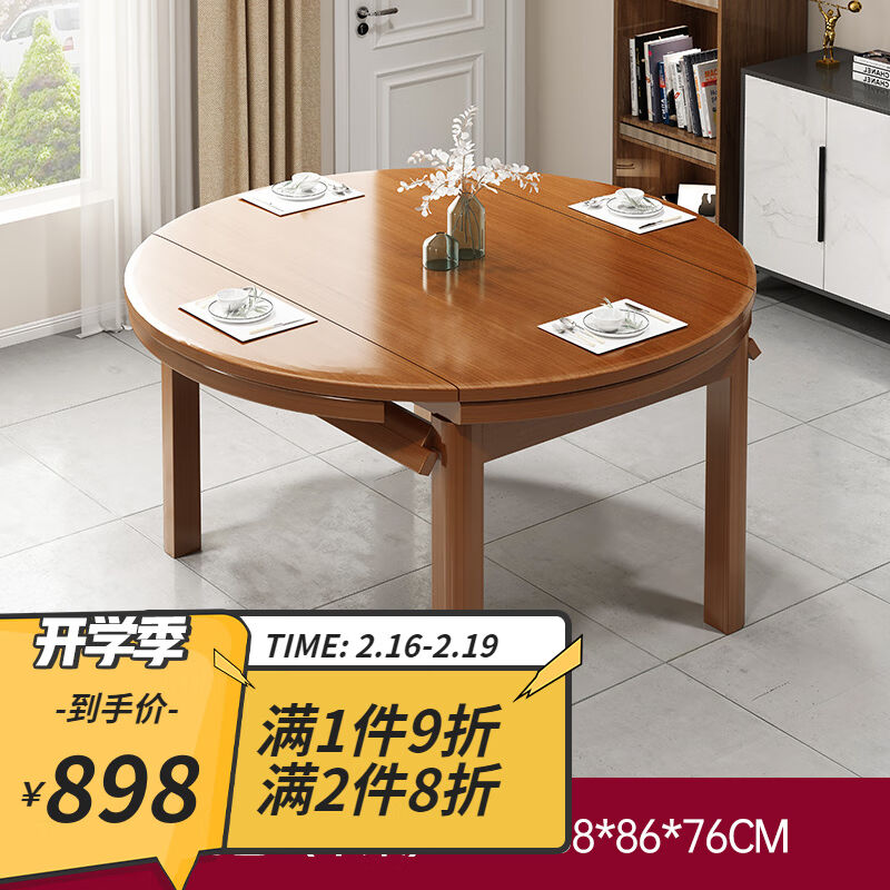 UCU实木腿餐桌椅组合小户型家用伸缩折叠圆形饭桌胡桃色1.38米单