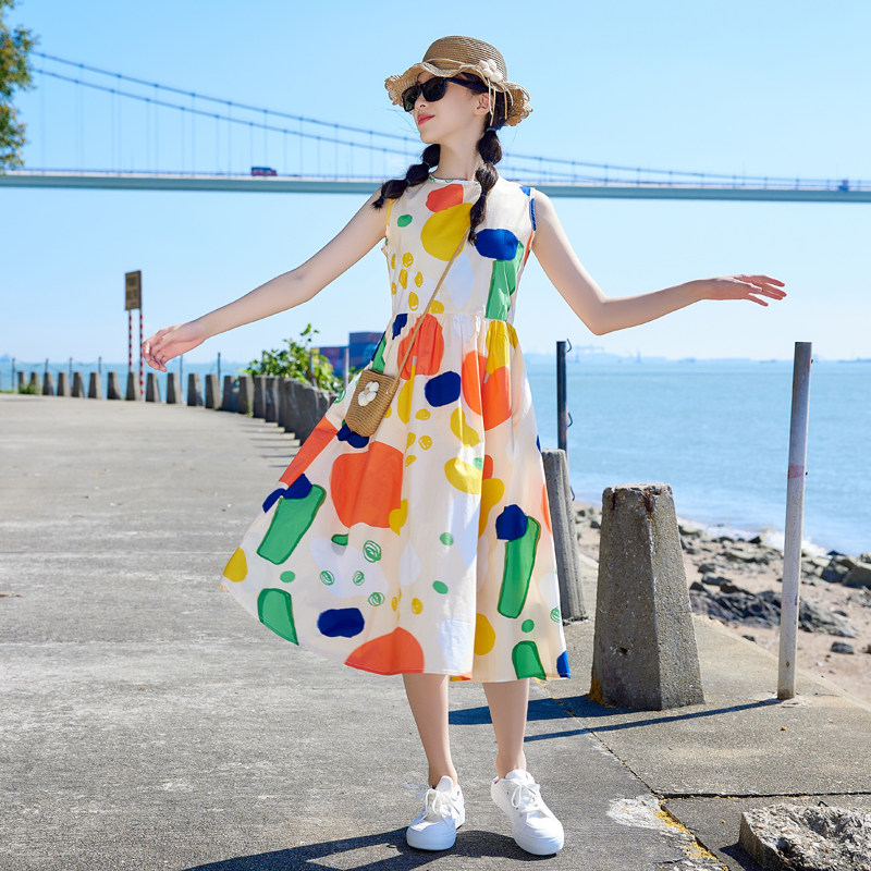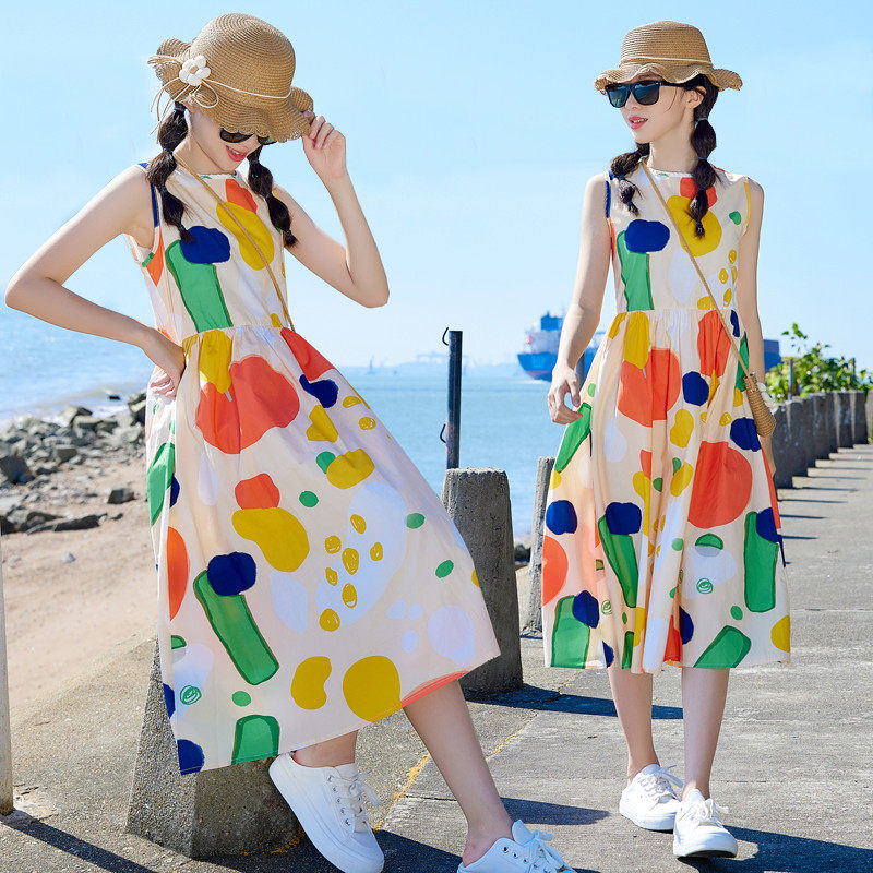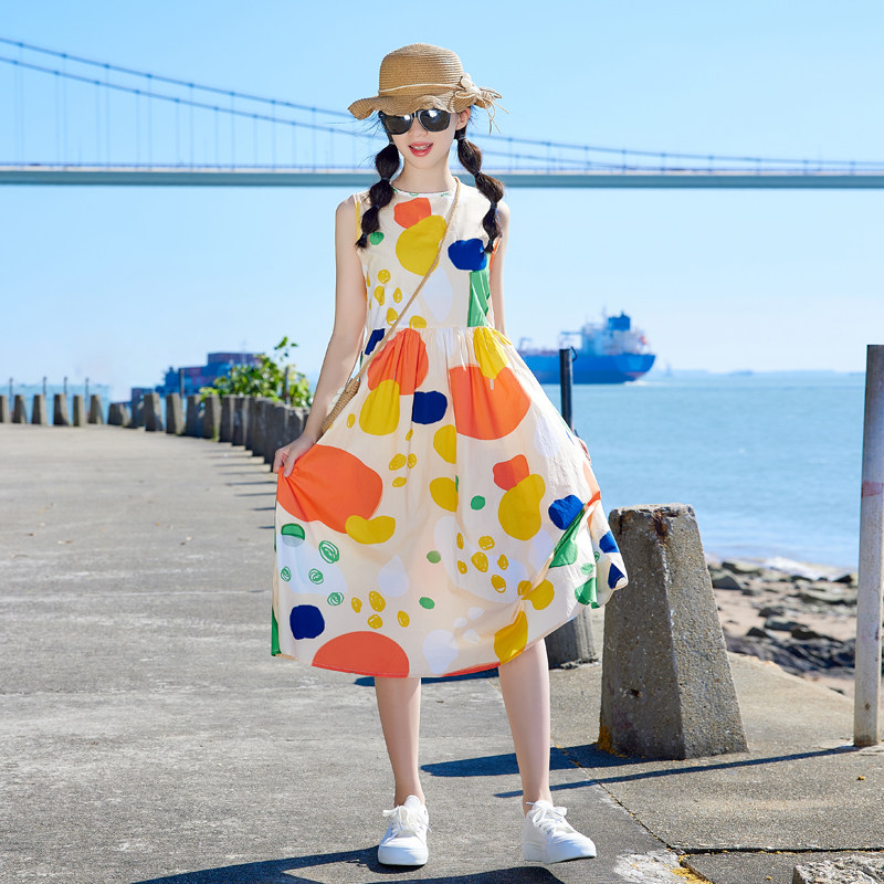 女童沙滩连衣裙亲子装大童背心裙