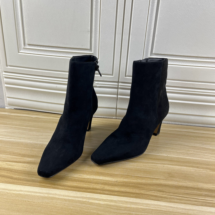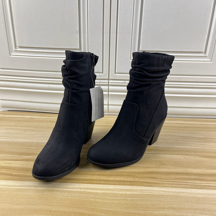 外贸原单女靴杂款36码独码小码圆头纯色时尚粗跟侧拉链短靴长靴