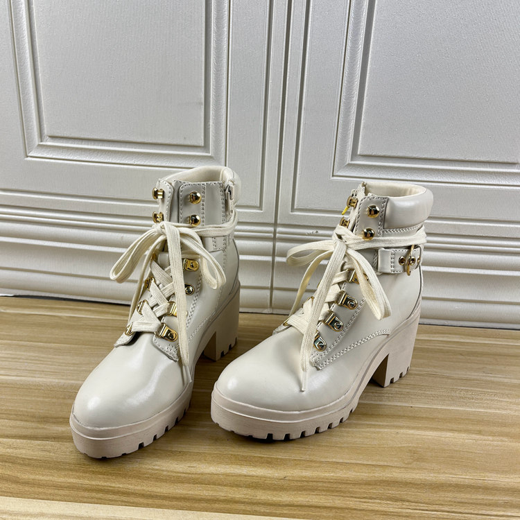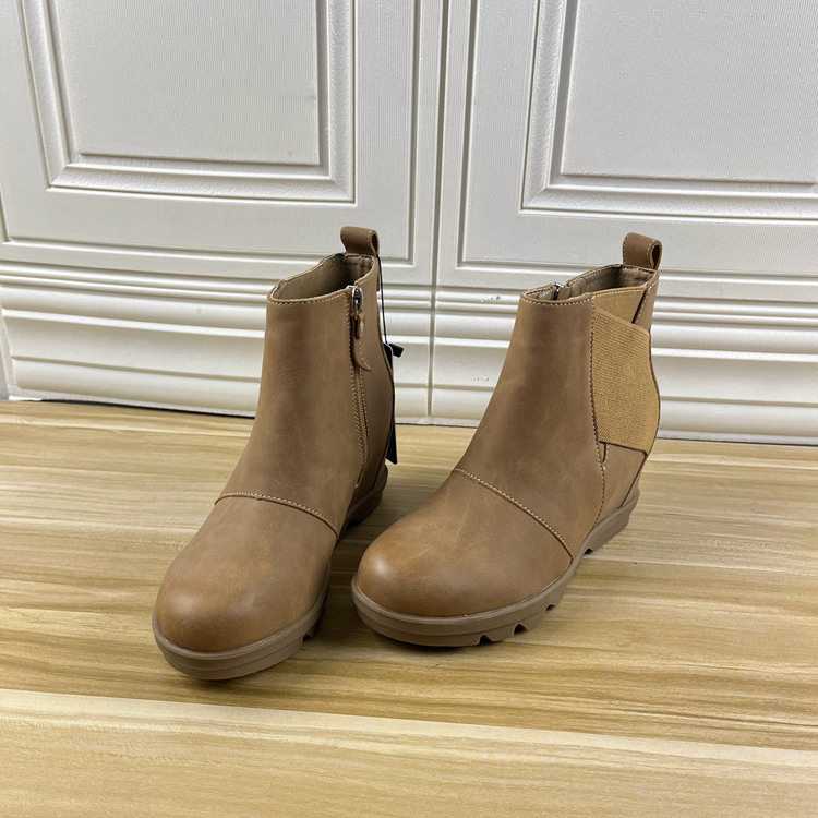 圆头纯色时尚粗跟侧拉链短靴长靴