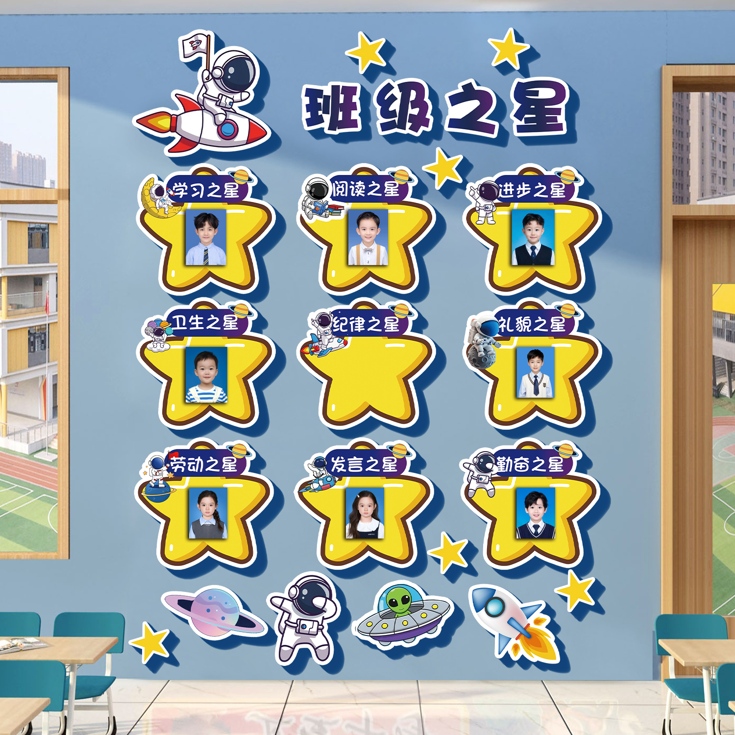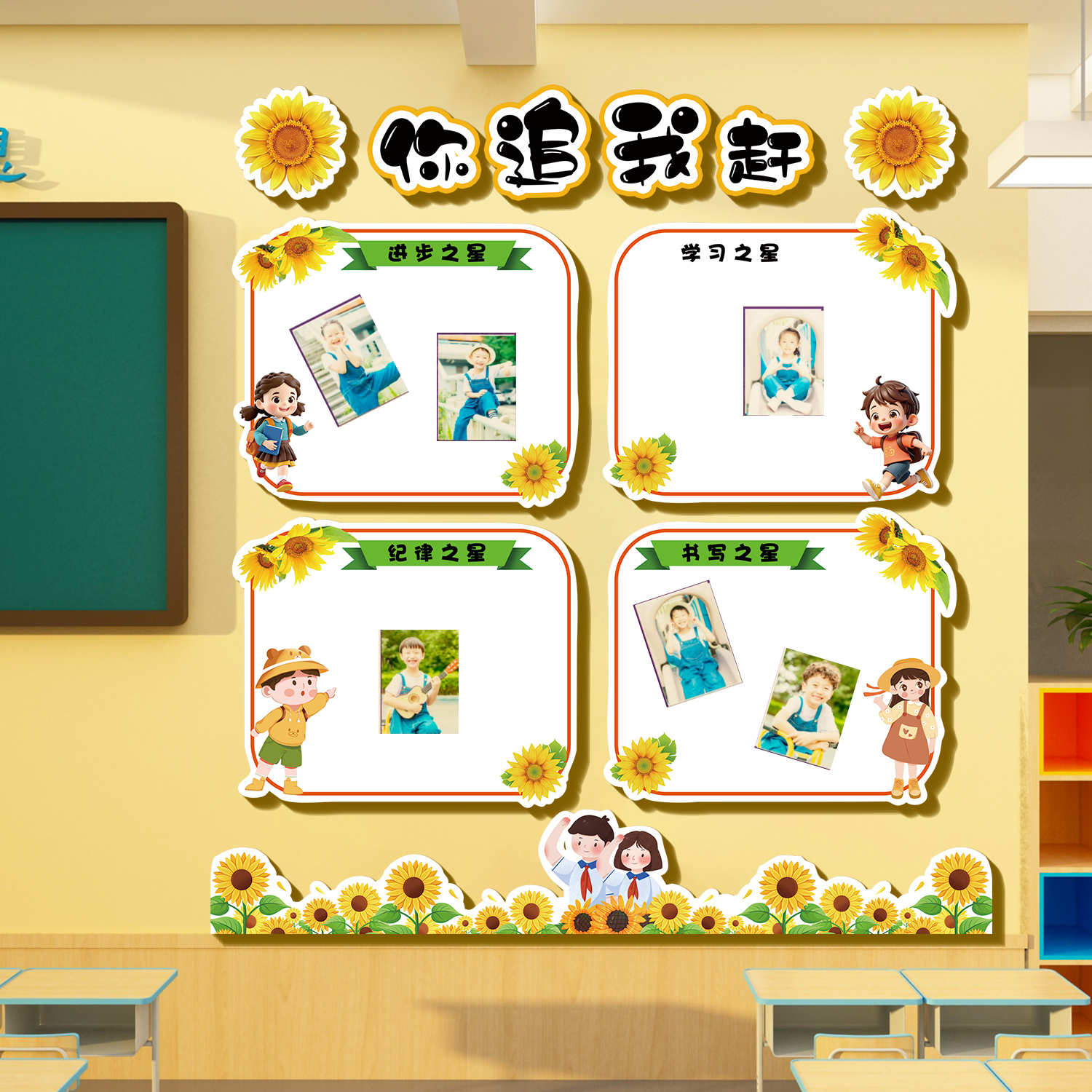 国风班级之星墙贴小学教室布置装饰文化背景你追我赶黑板报环创QT