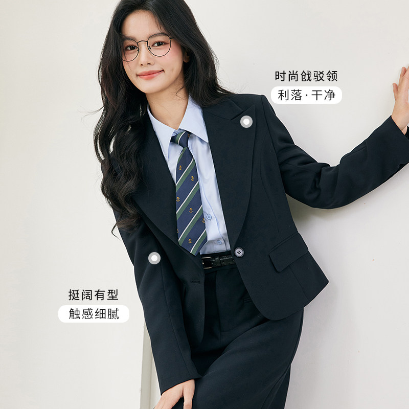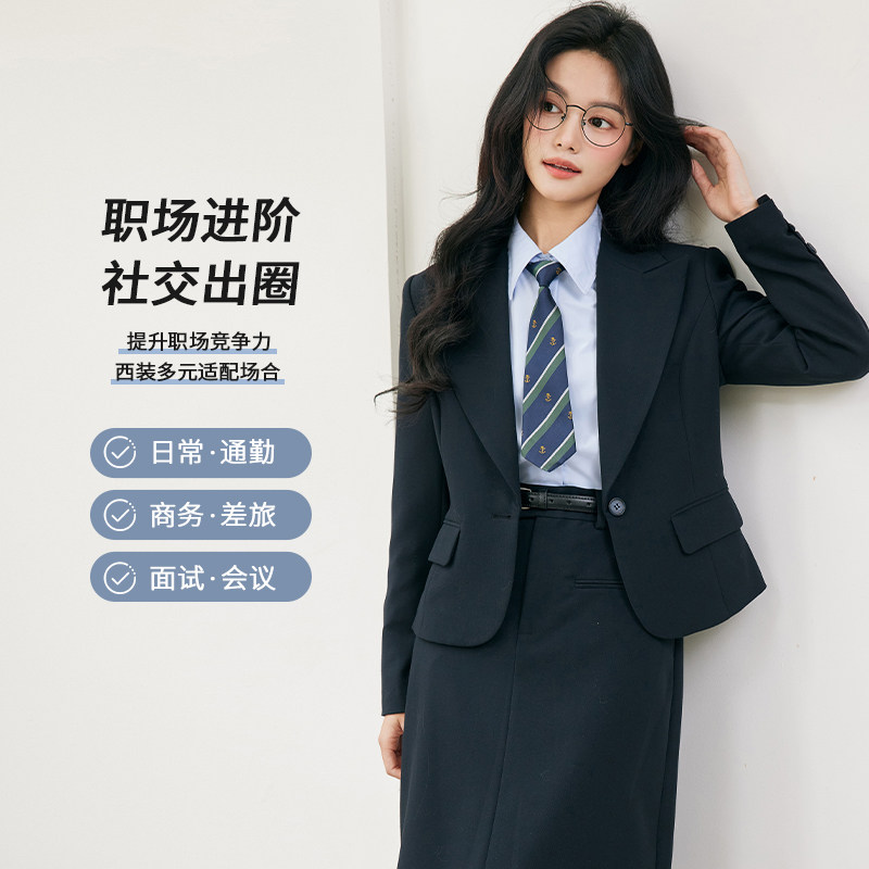 图曼朵黑藏青职业西装套装女穿搭