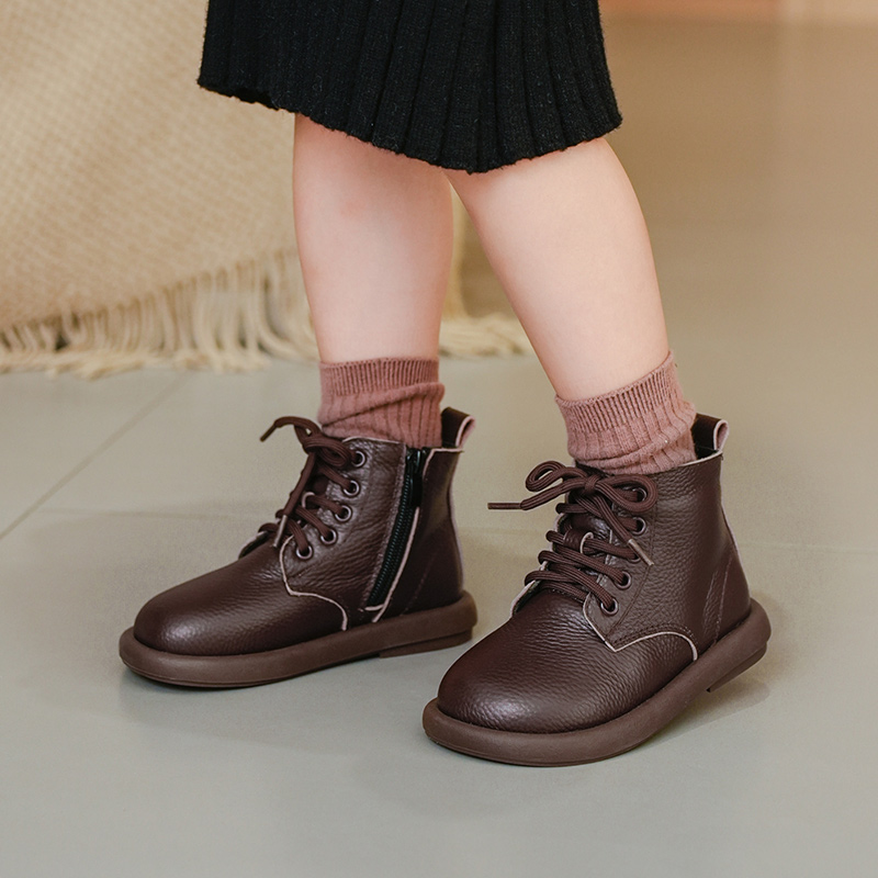 女童真皮短靴2025秋冬季新款儿童马丁靴头层牛皮侧拉链宝宝加绒靴