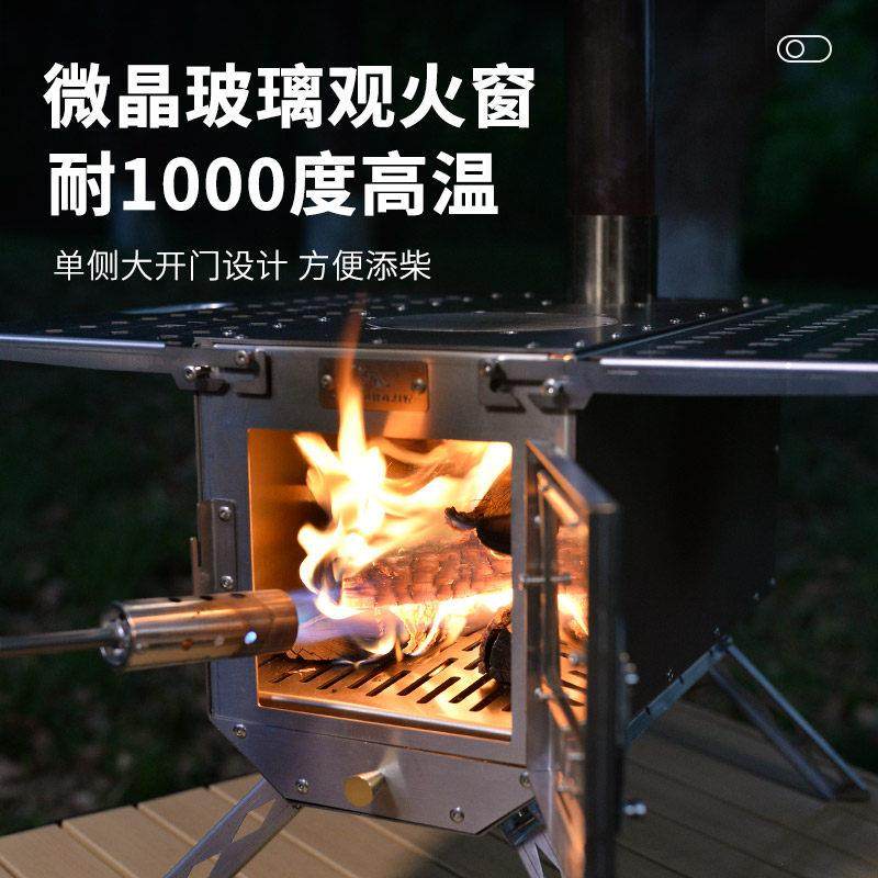 梵帝赫户外露营柴火炉野餐炉灶颗粒仓多功能折叠帐篷桌面取暖炉具