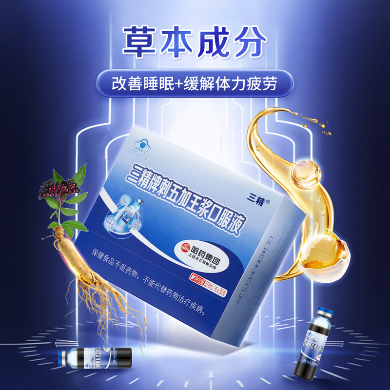 哈药三精刺五加王浆口服液中老年人男女改善睡眠缓解疲劳非褪黑素