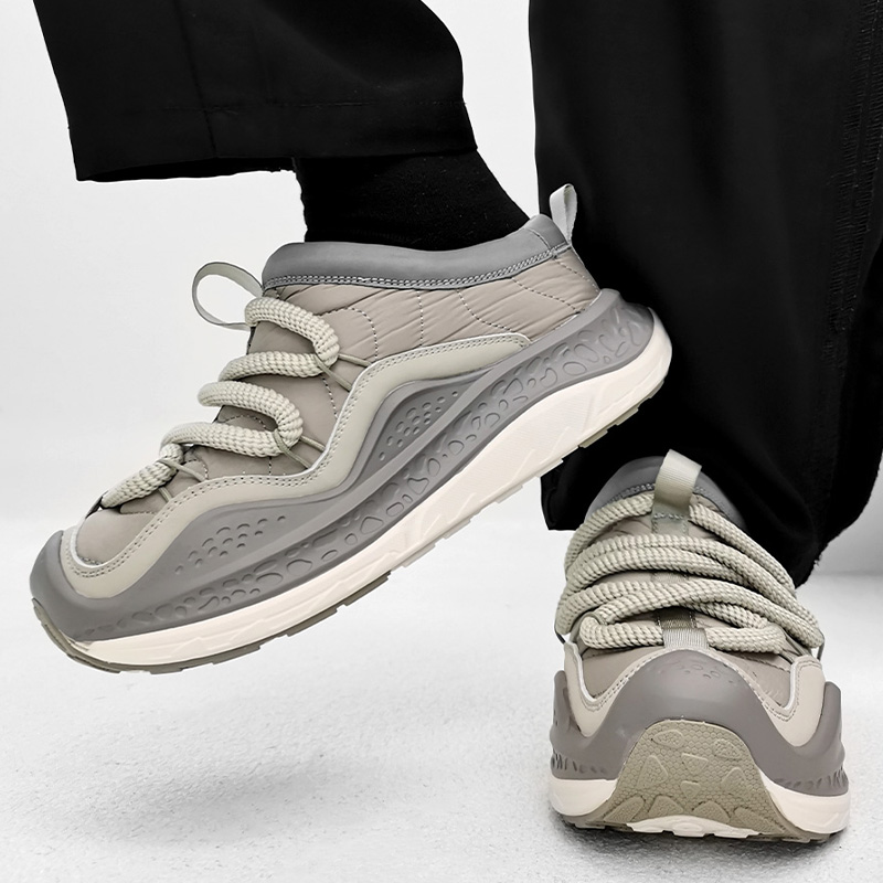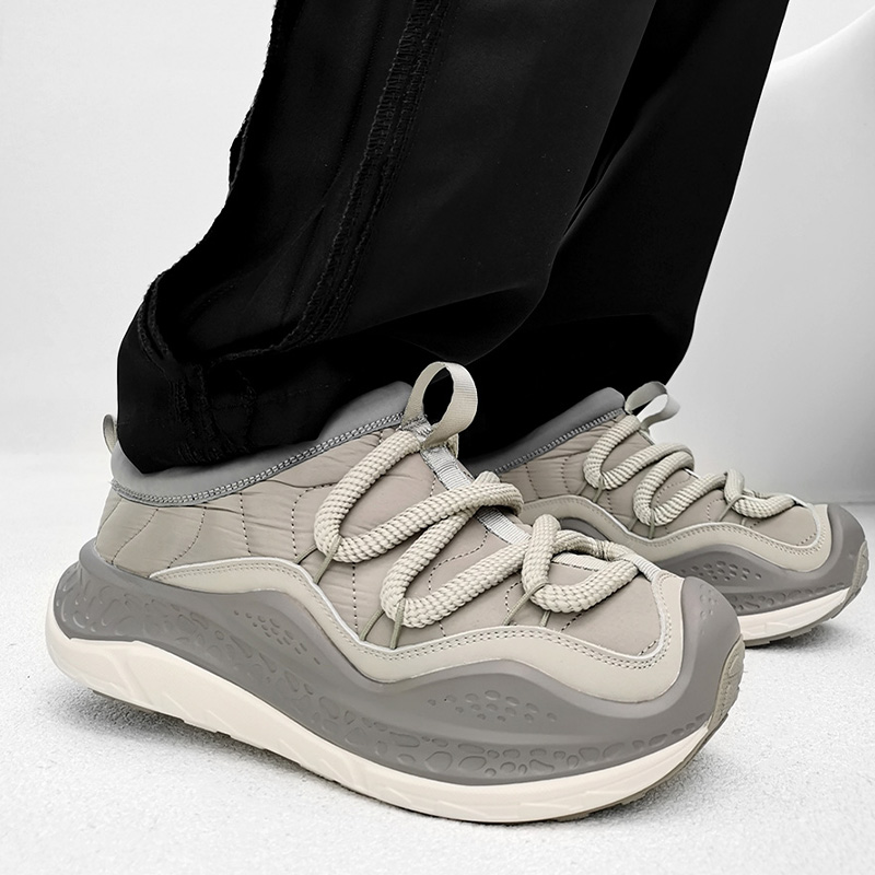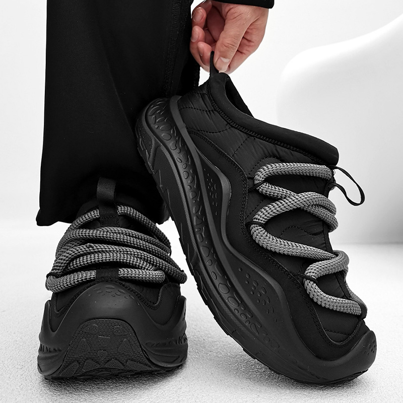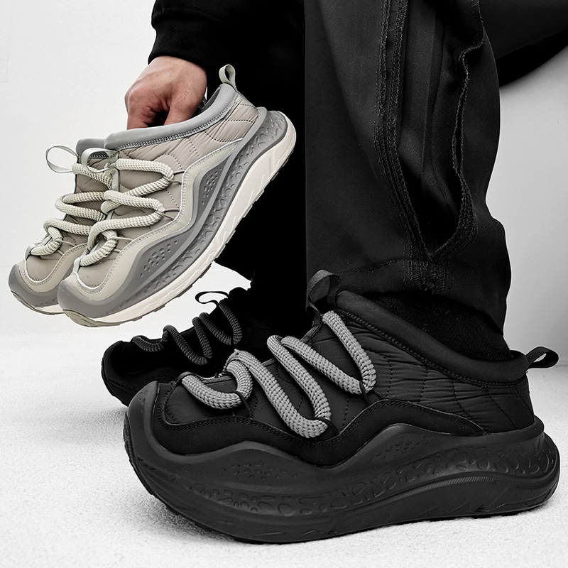 小众粗鞋带半托雪地靴男女冬季加绒厚底增高面包棉鞋户外老爹鞋潮