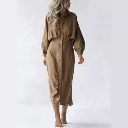 新款 2024春夏装系带宽松显瘦衬衫长裙过膝法式复古棉麻连衣裙