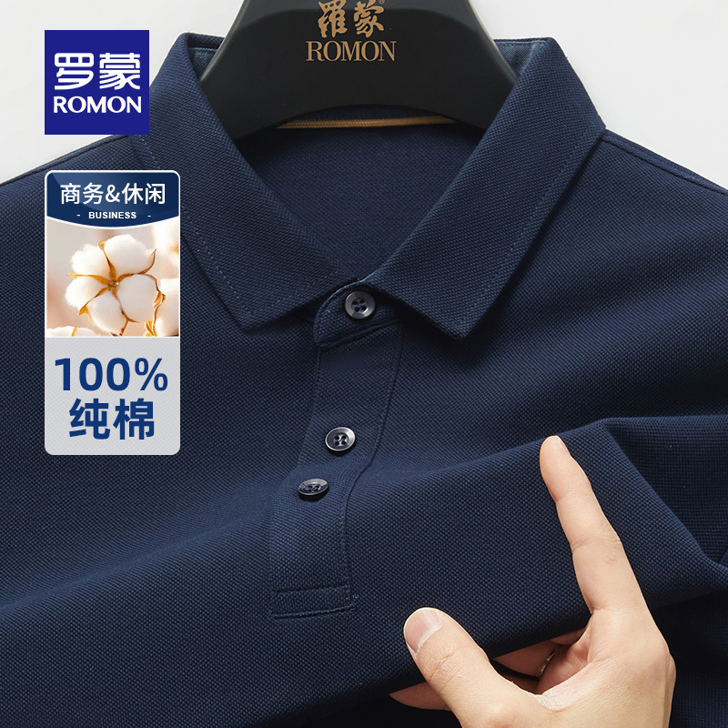 【纯棉】罗蒙男士商务长袖POLO衫2025秋季新款时尚纯色翻领T恤衫