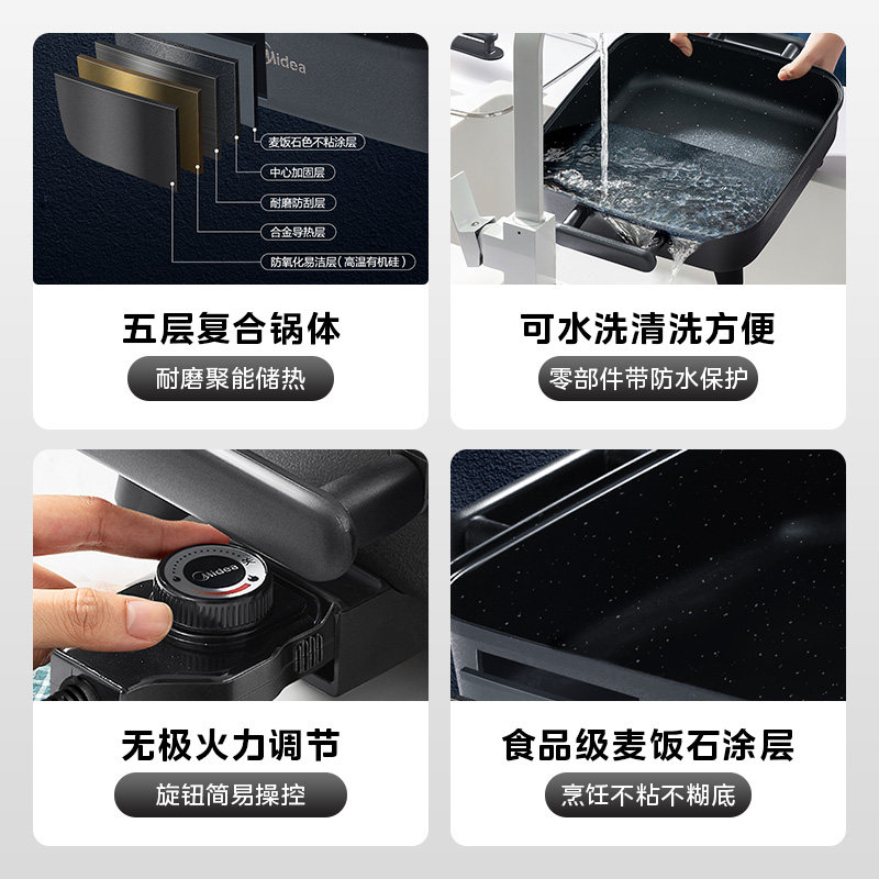 美的电火锅锅家用多功能电煮锅一体式电热锅电炒锅炒菜电锅不粘锅