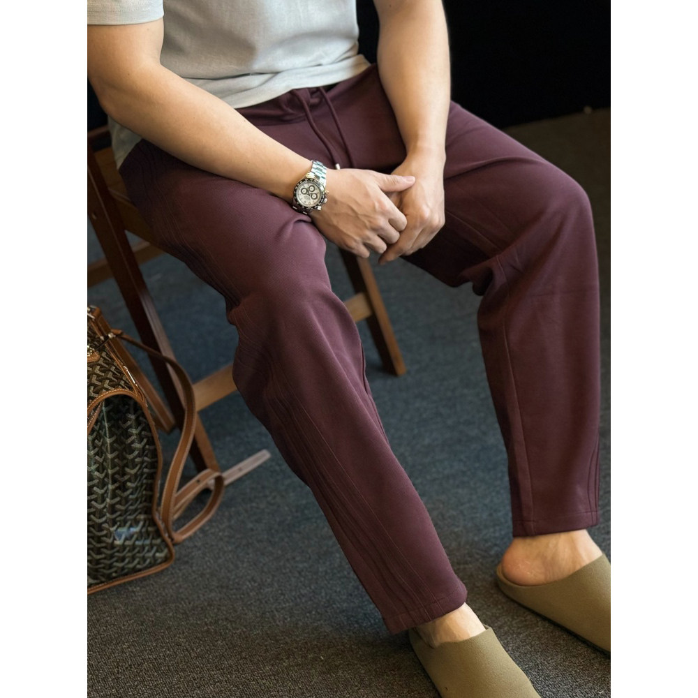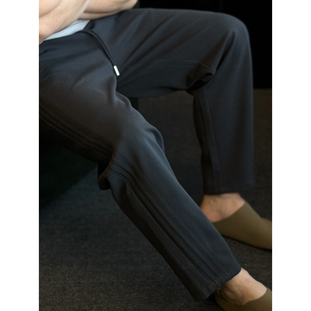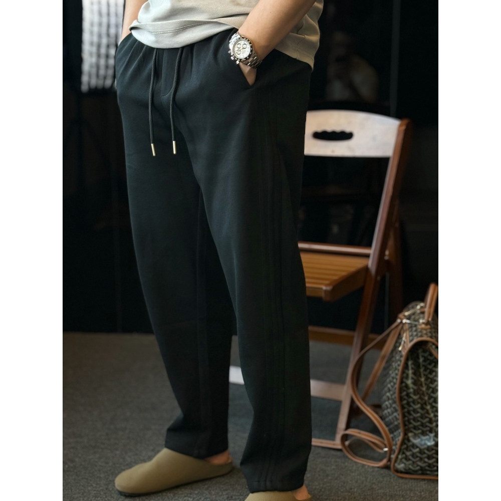 简素Design侧条纹抽绳垂感休闲直筒长裤男宽松通勤纯色卫裤春夏季