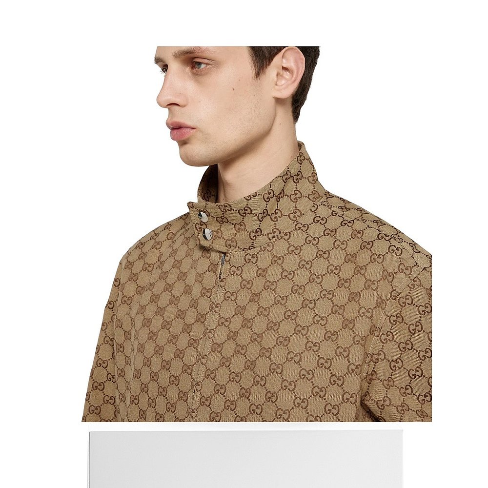 自营欧洲直邮Gucci/古驰 男士驼色/深棕色帆布双G飞行员夹克外套