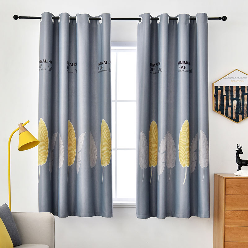 高遮光窗帘布成品飘窗短帘v简约现代儿童卧室租房平面窗免打孔安