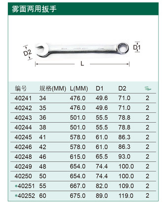 世达工具 SATA 雾面两用扳手40241 40242 40243-40252 34-60mm