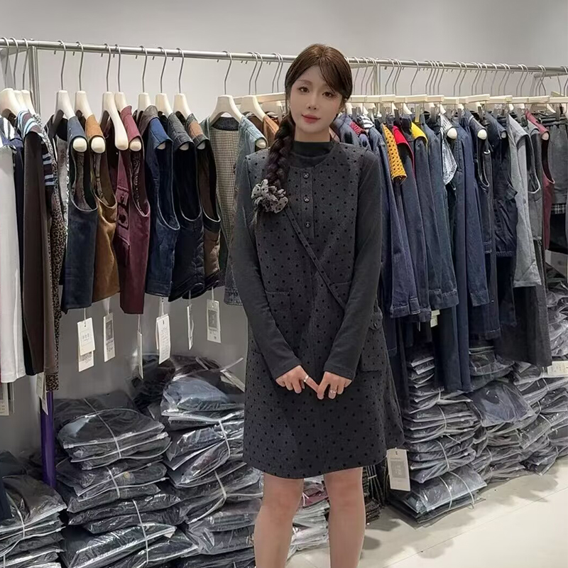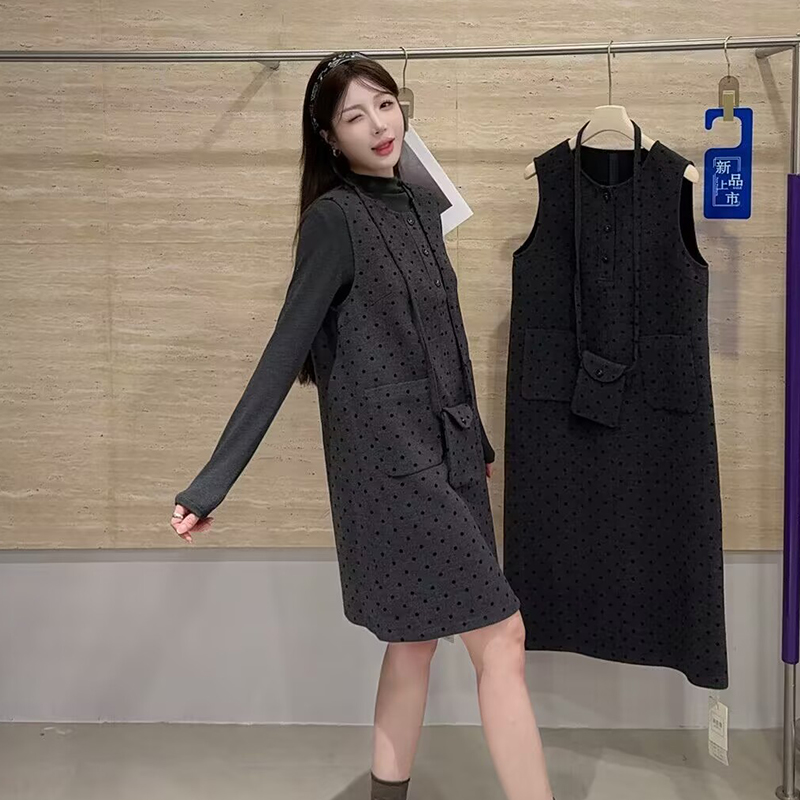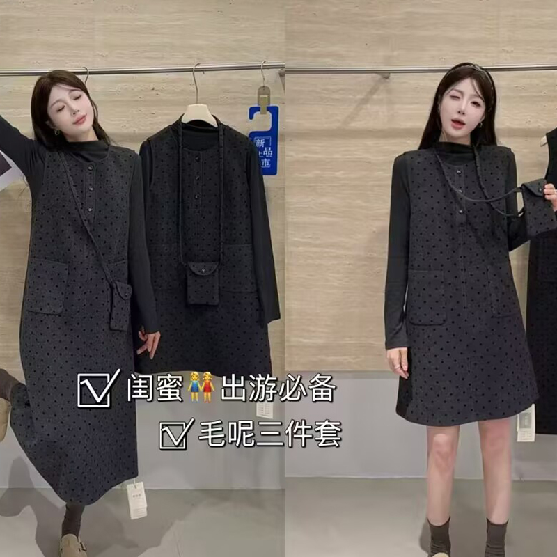 小香风波点背心裙子套装女2025秋冬新款韩系高级感显瘦毛呢三件套