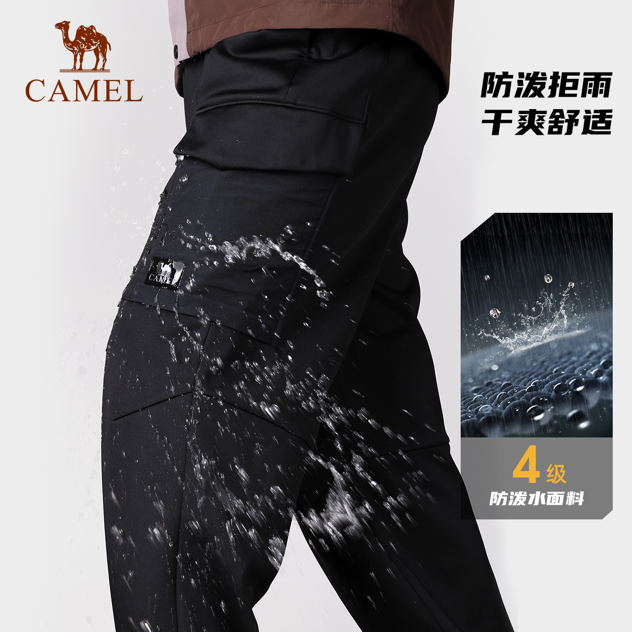 [王俊凯同款]骆驼户外冲锋软壳裤男束脚工装裤2025春秋发热加绒