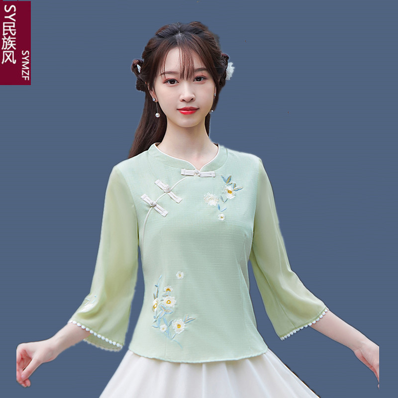 SY改良时尚秋装复古中式女装棉麻唐装女盘扣旗袍上衣民国风茶服女