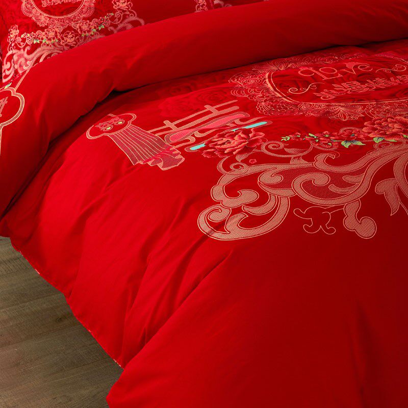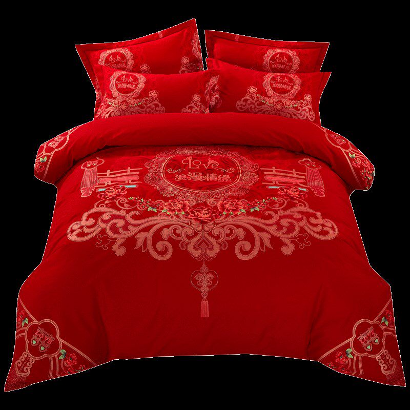 新款加厚磨毛婚庆四件套大红色结婚床上用品1.8Rm全棉纯棉床单被