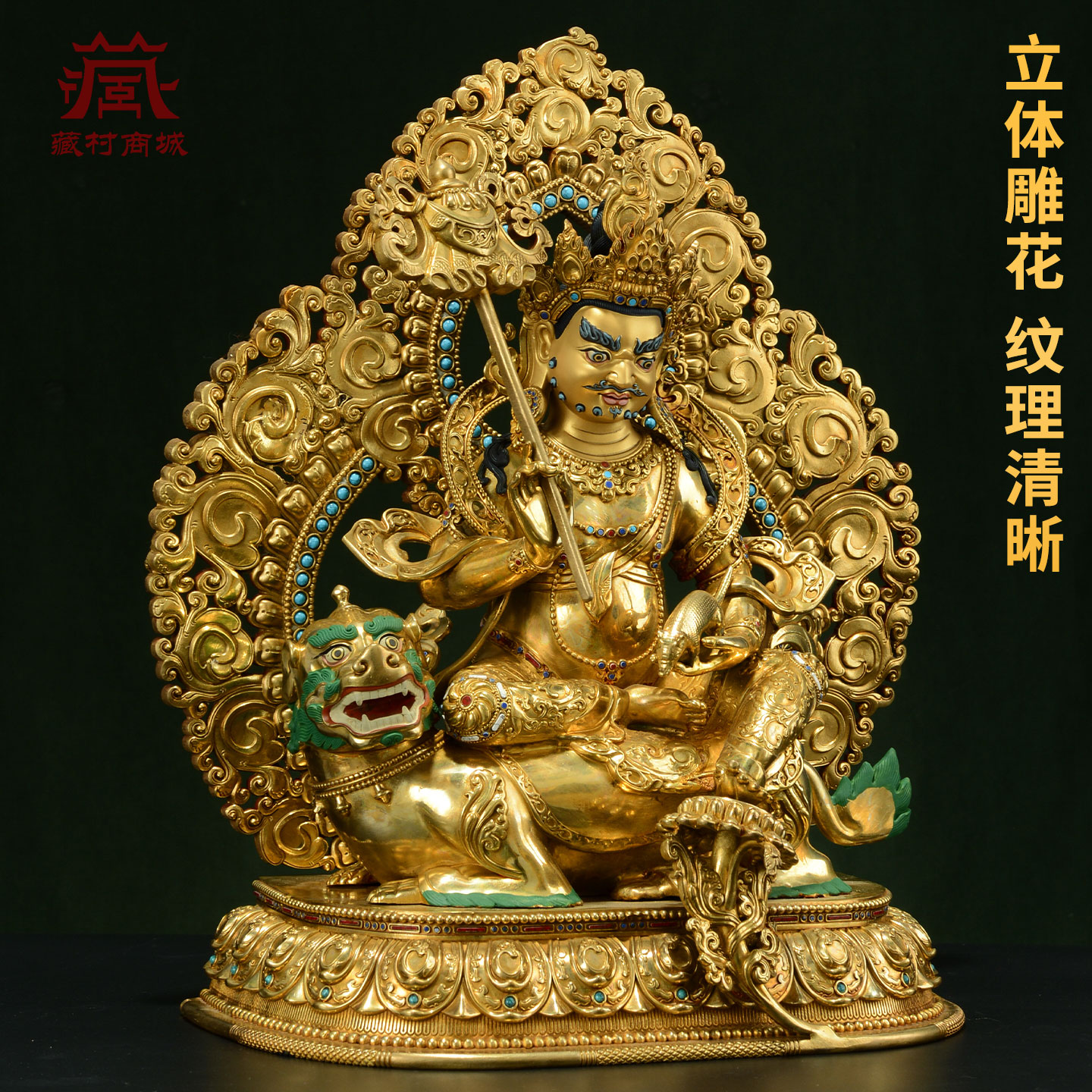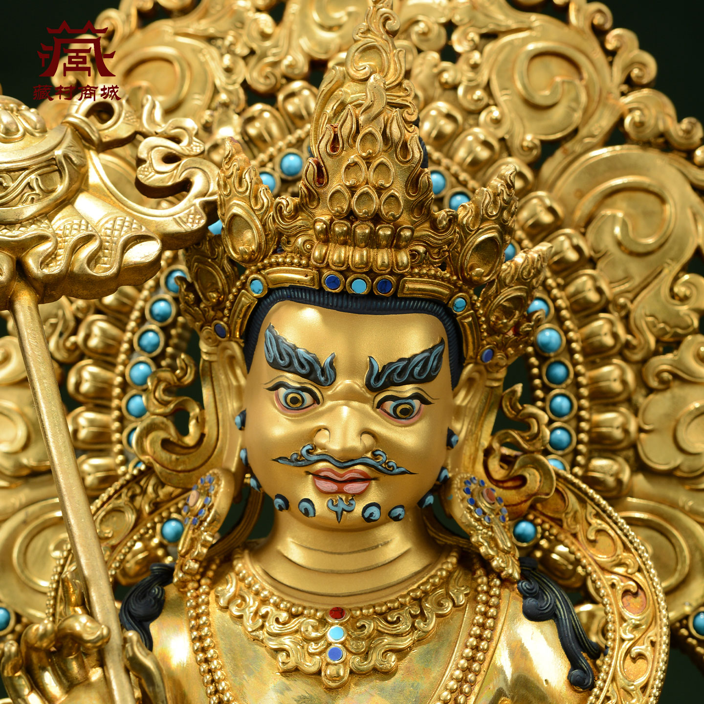 藏村全鎏金《多闻天王》精工铜雕《财宝天王》铜佛像摆件