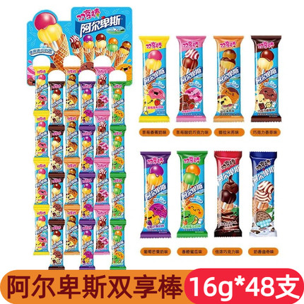 阿尔卑斯棒棒糖双享棒16g*48支混合口味休闲儿童礼物硬糖糖果零食