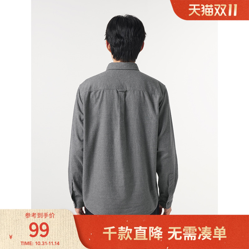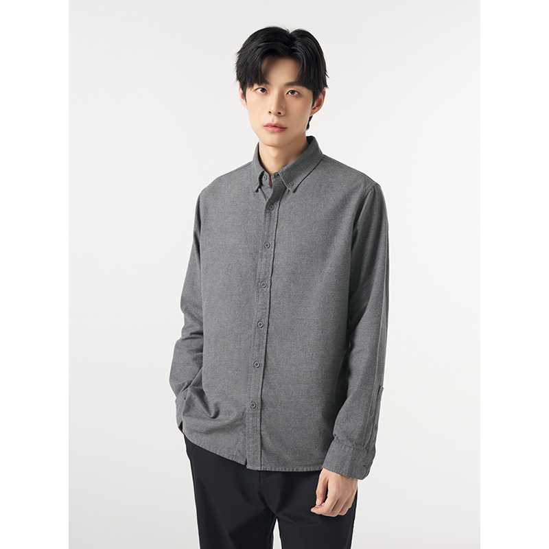 热风2024年秋季新款男士法兰绒衬衫长袖商务休闲衬衣翻领上衣