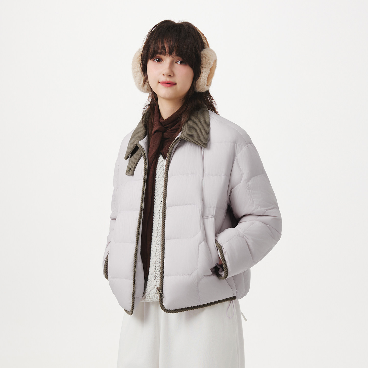 坦博尔新款女衬衫领羽绒服轻薄保暖时尚翻领短款外套TB5330226Z