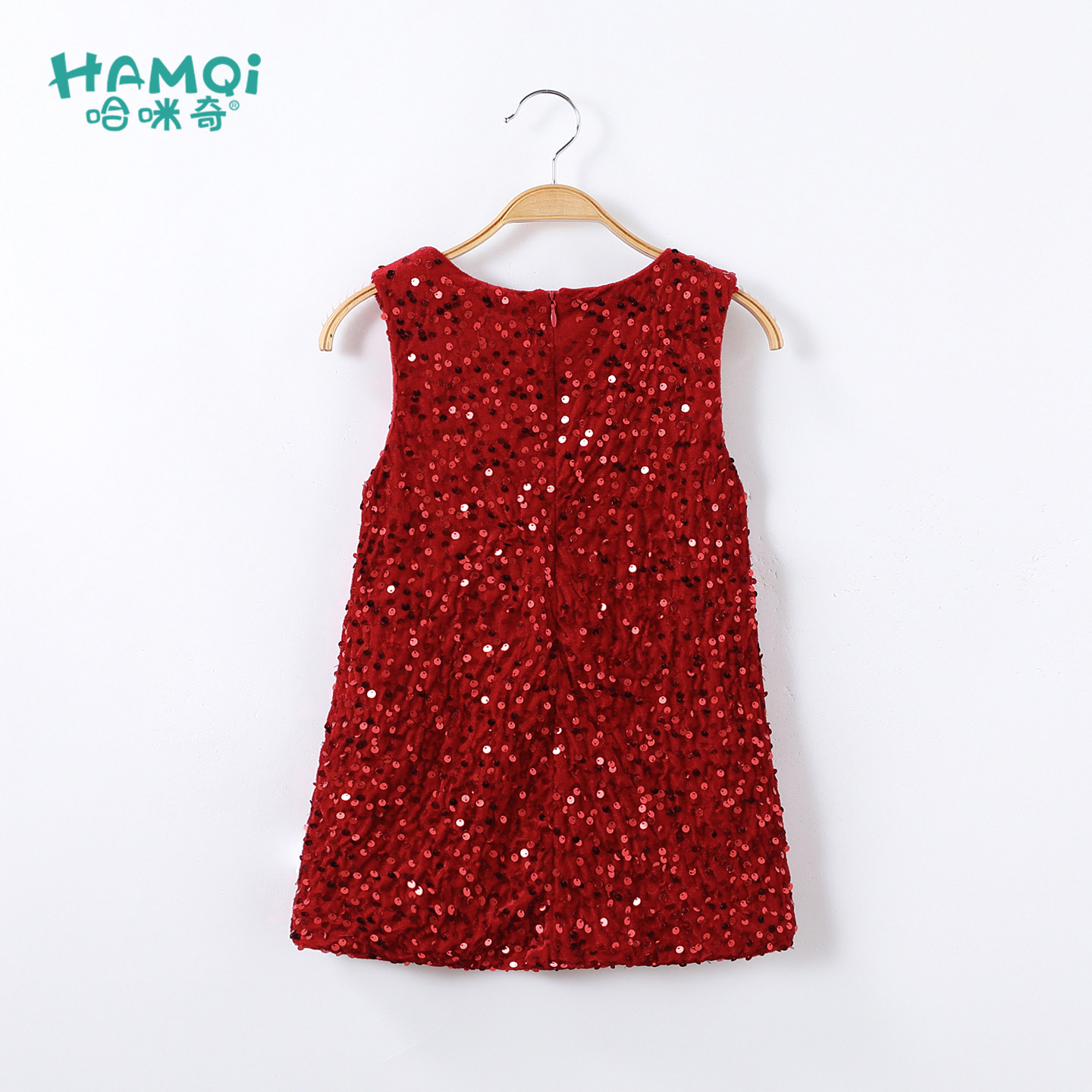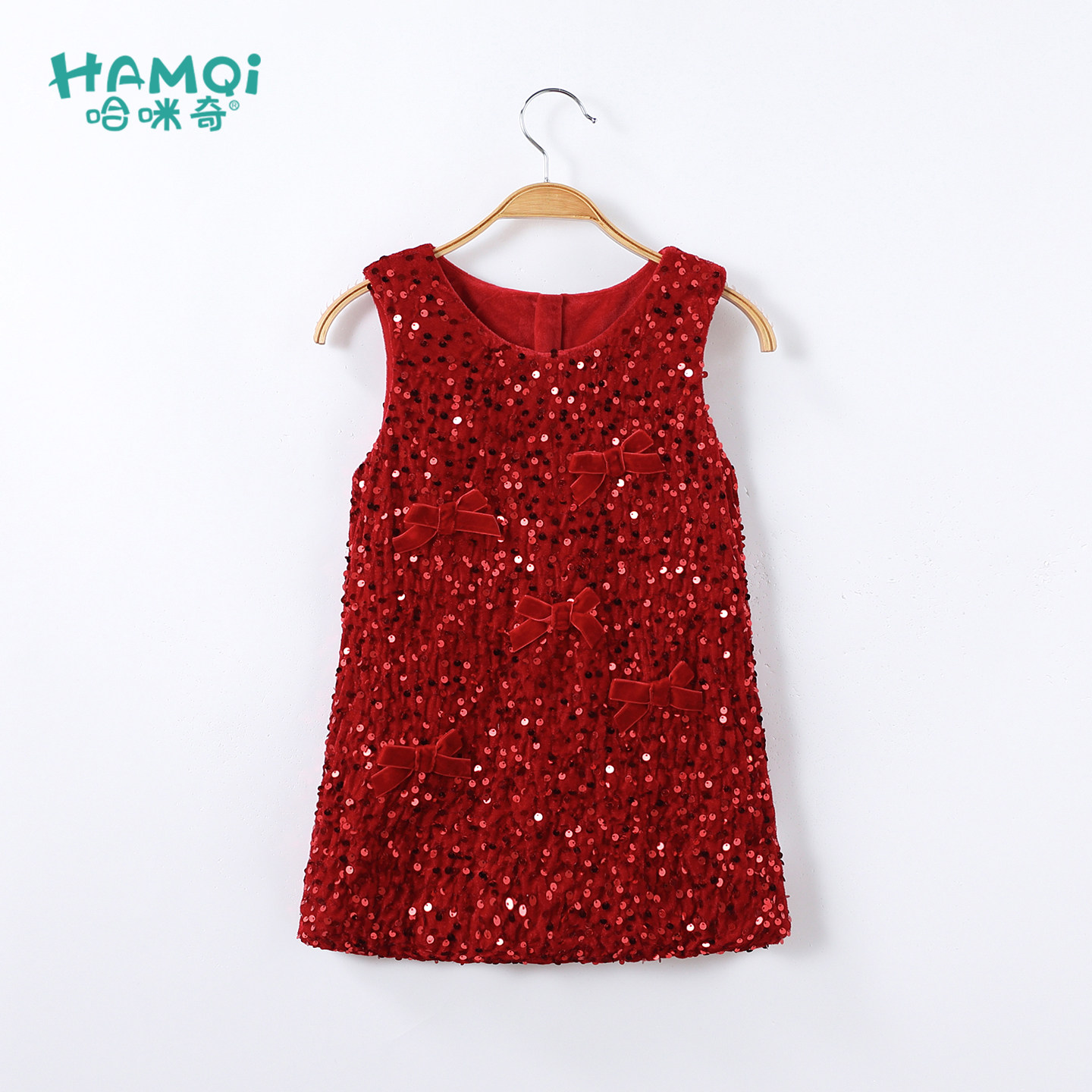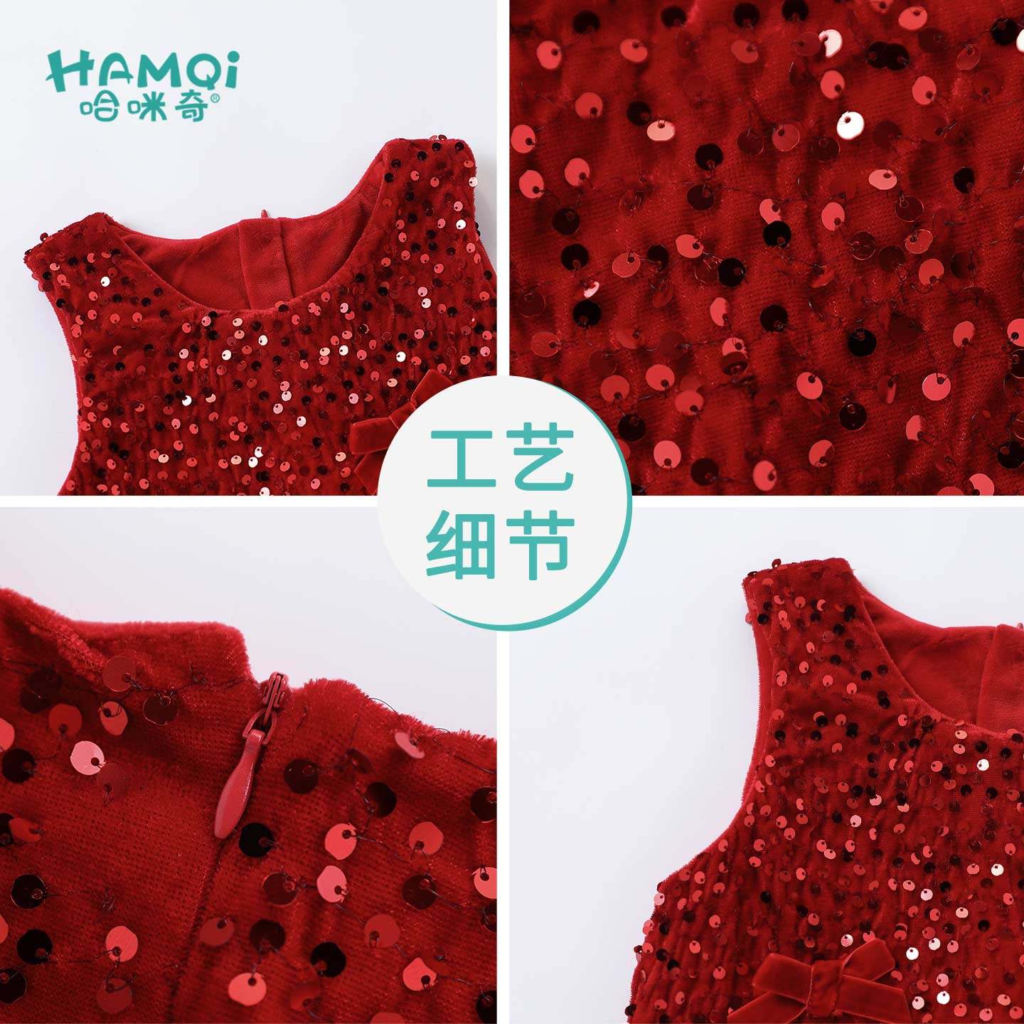 女童加绒连衣裙秋冬装新年亮片洋气背心公主裙小儿童宝宝裙子红色