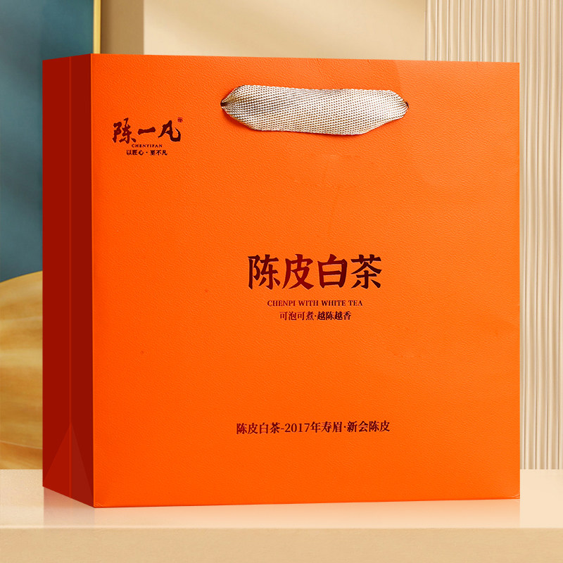 陈一凡茶叶礼盒陈皮白茶2017福鼎老白茶叶陈皮茶小方片盒装送礼