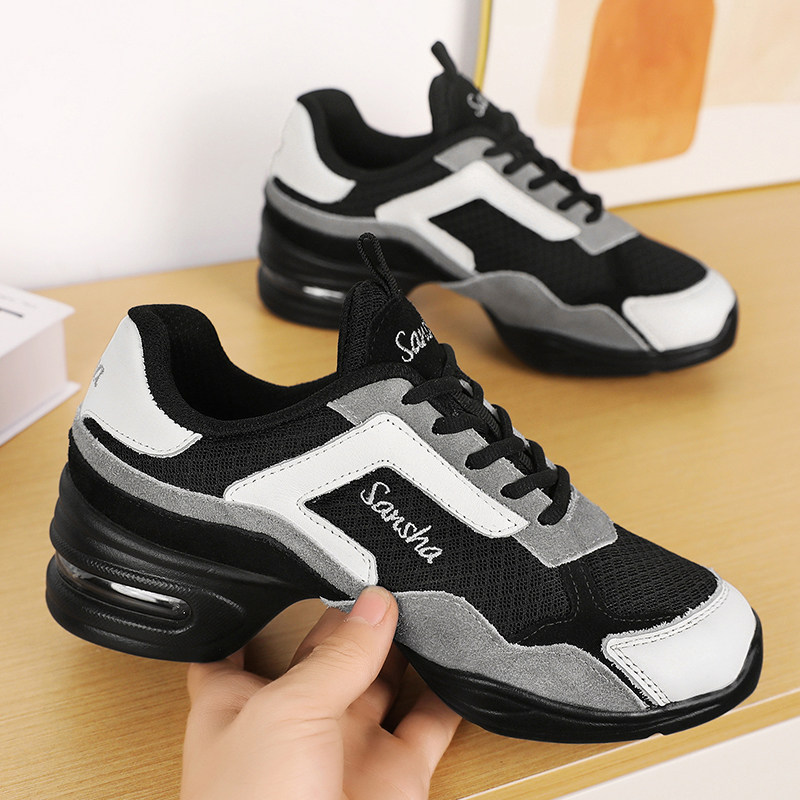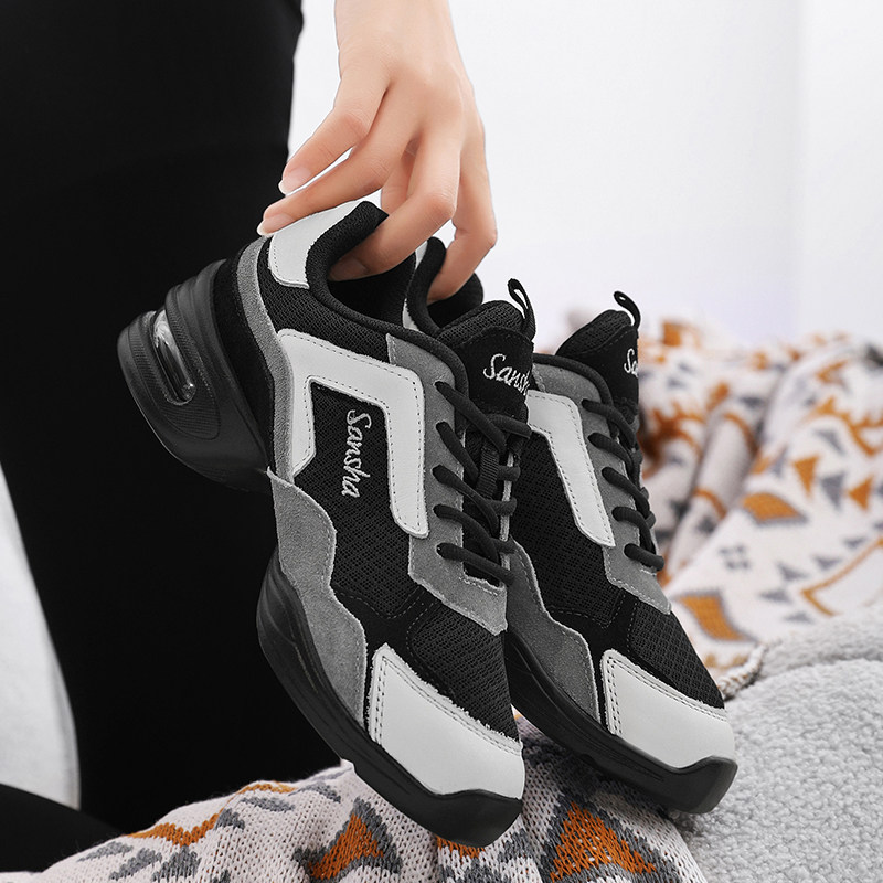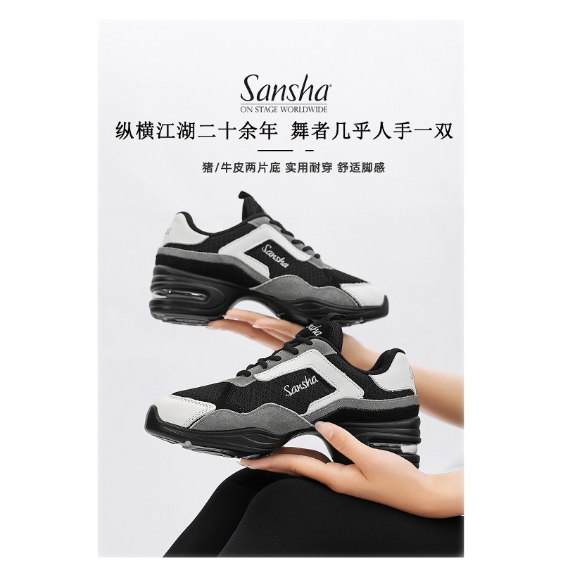 Sansha三沙现代舞鞋女爵士透气软底反绒皮运动舞蹈鞋广场舞鞋减震