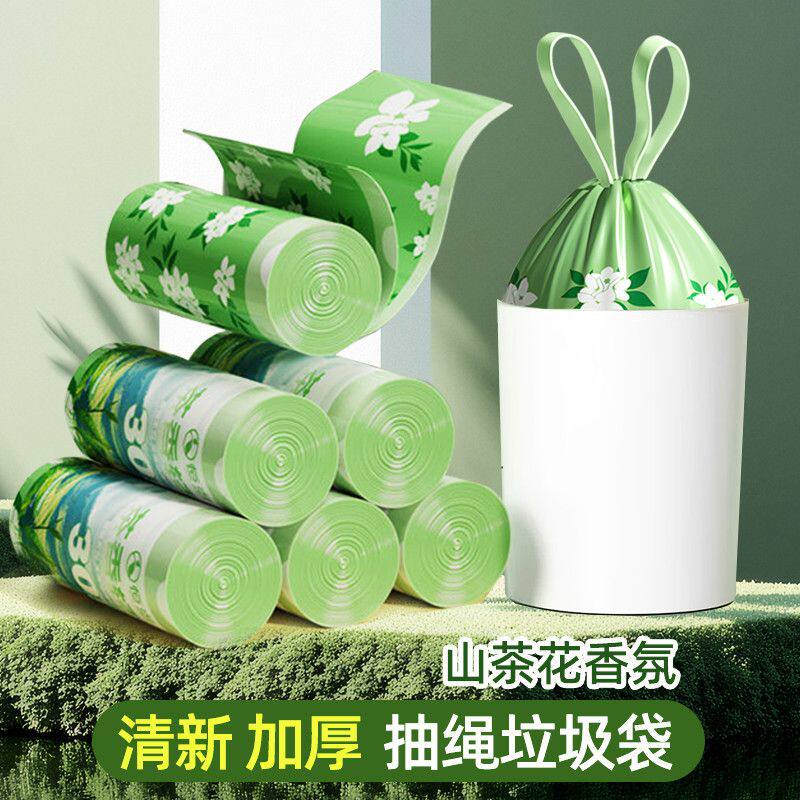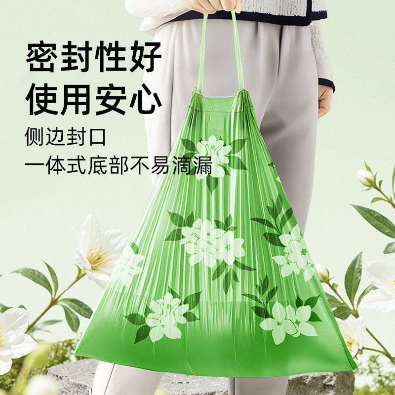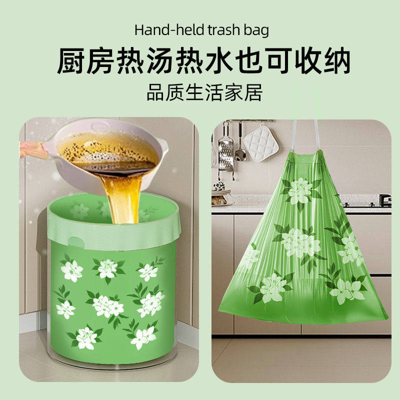 抽绳垃圾袋家用手提式加厚款厨房印花免撕宿舍大号塑料袋自动收口