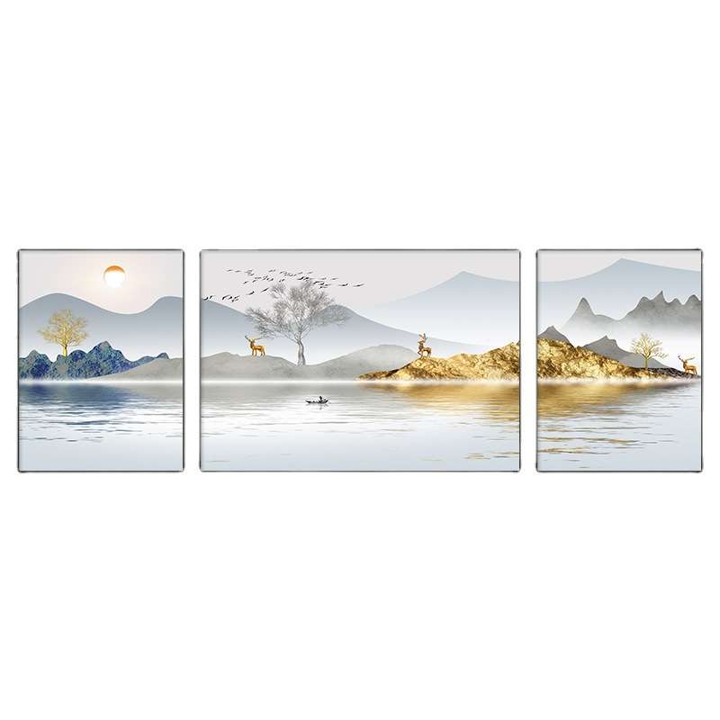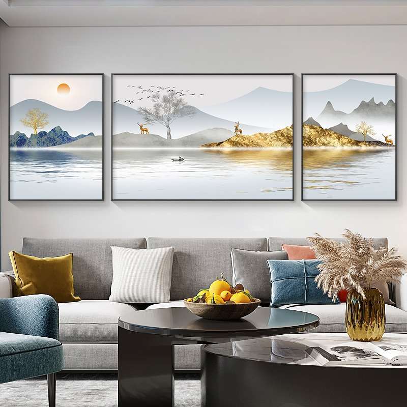 客厅装饰画大气山水画三联画沙发背景墙壁画现代新中式组合挂画