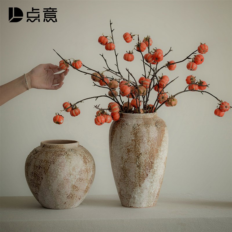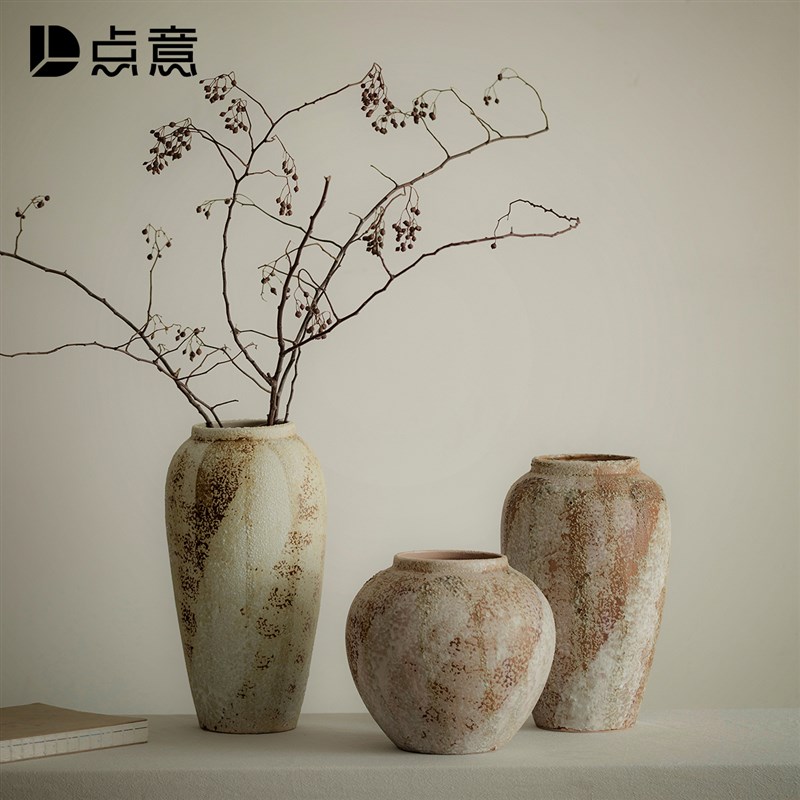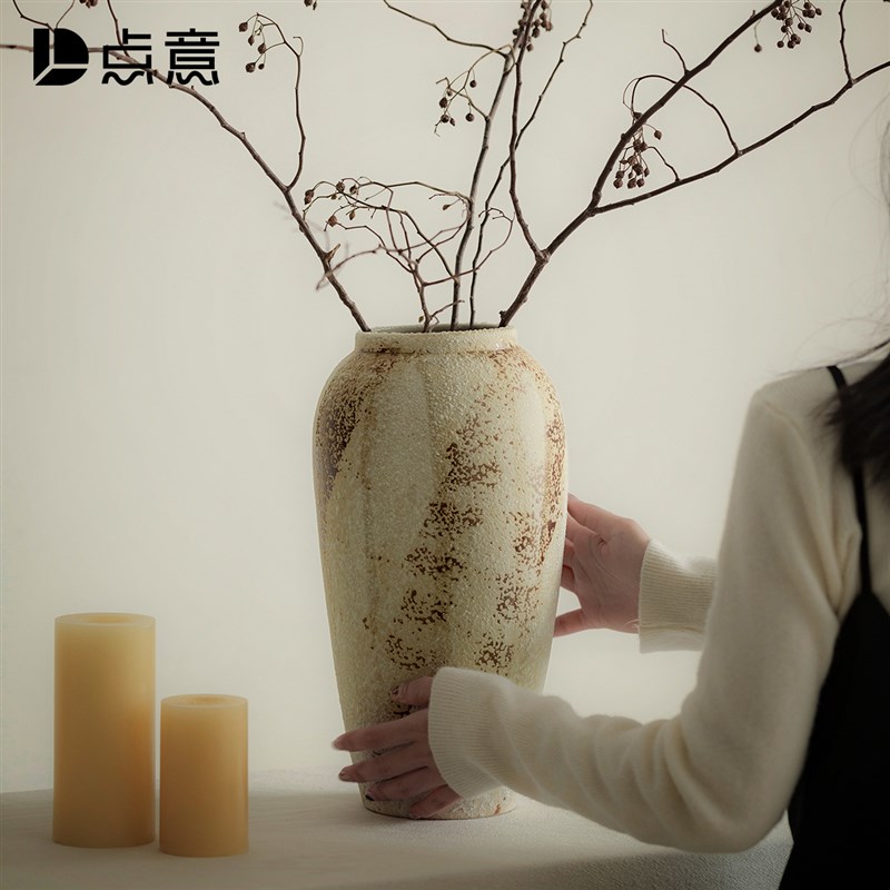陶瓷花瓶斑驳复古陶罐侘寂风民宿干花不规则颗粒感山归来专用干枝