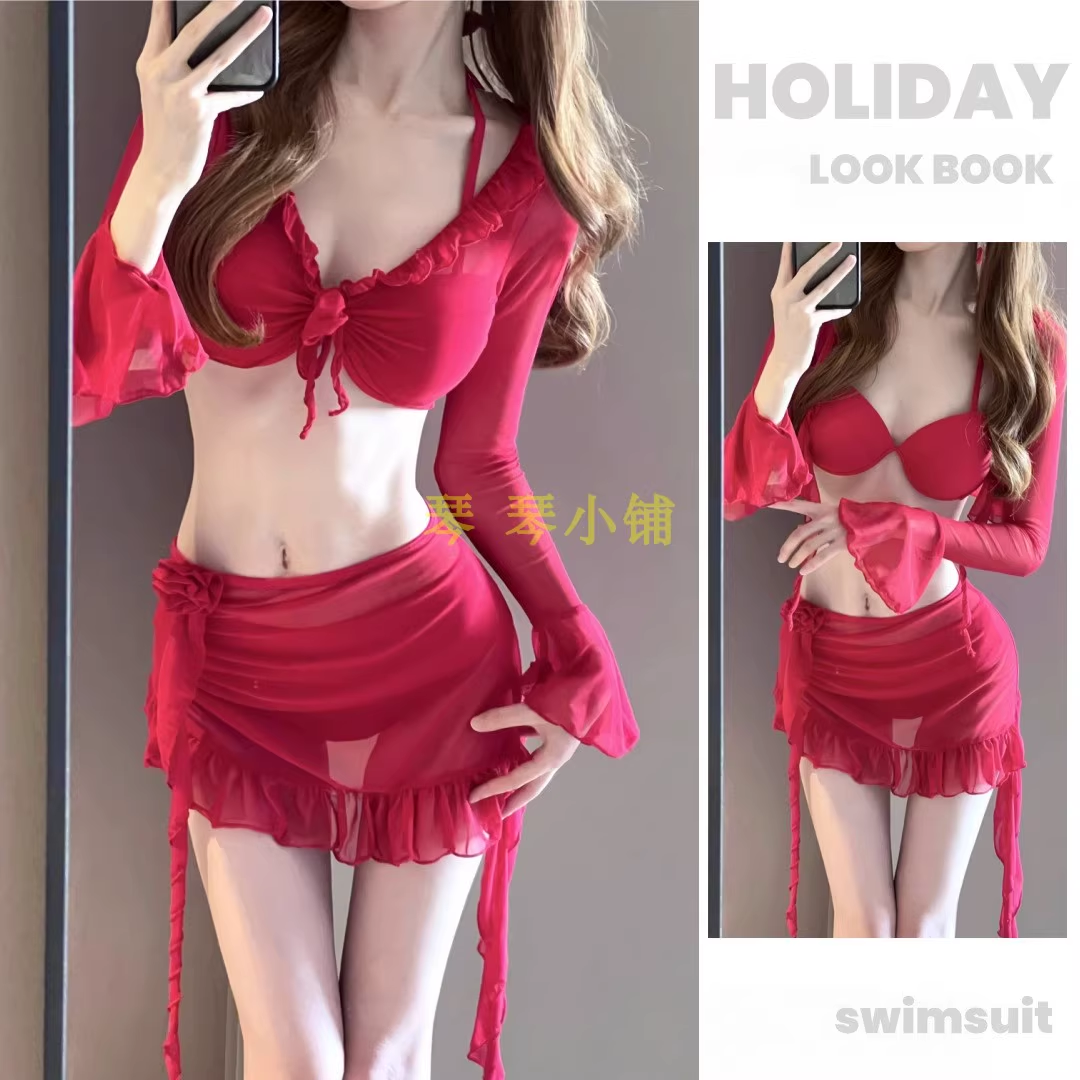 秒杀欧美模特比基尼三件套小胸聚拢性感夏季沙滩三点式温泉泳衣女