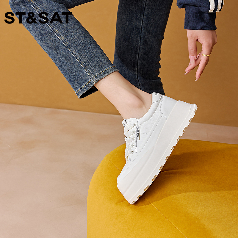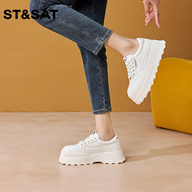 星期六厚底休闲小白鞋女2025年春季新款圆头系带板鞋百搭增高女鞋