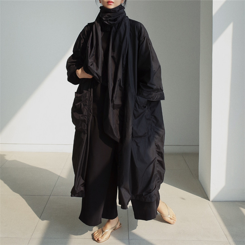 军工装外套过膝长款立领开衫休闲bf风时尚学生宽松大码系带风衣潮