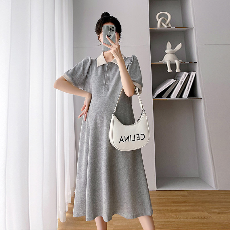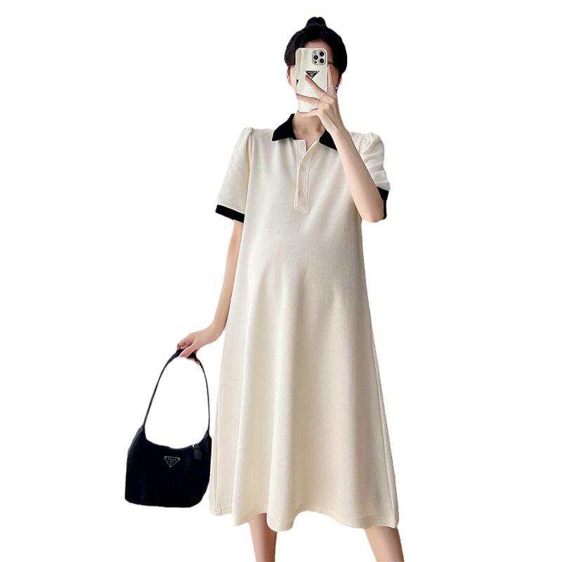 孕妇装夏天裙子女中长款夏季新款翻领宽松大码T恤时尚韩版连衣裙