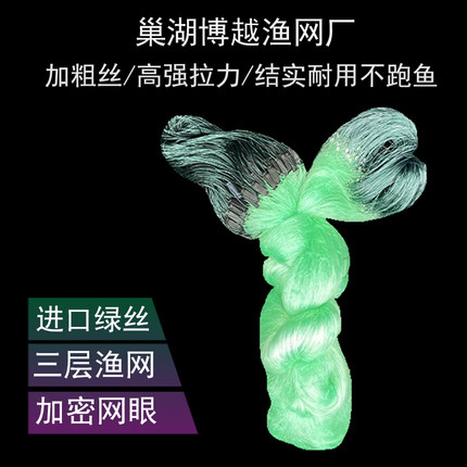 加粗丝9指10指进口绿丝三层沉网丝网粘网手工网100米长草鱼大鱼网