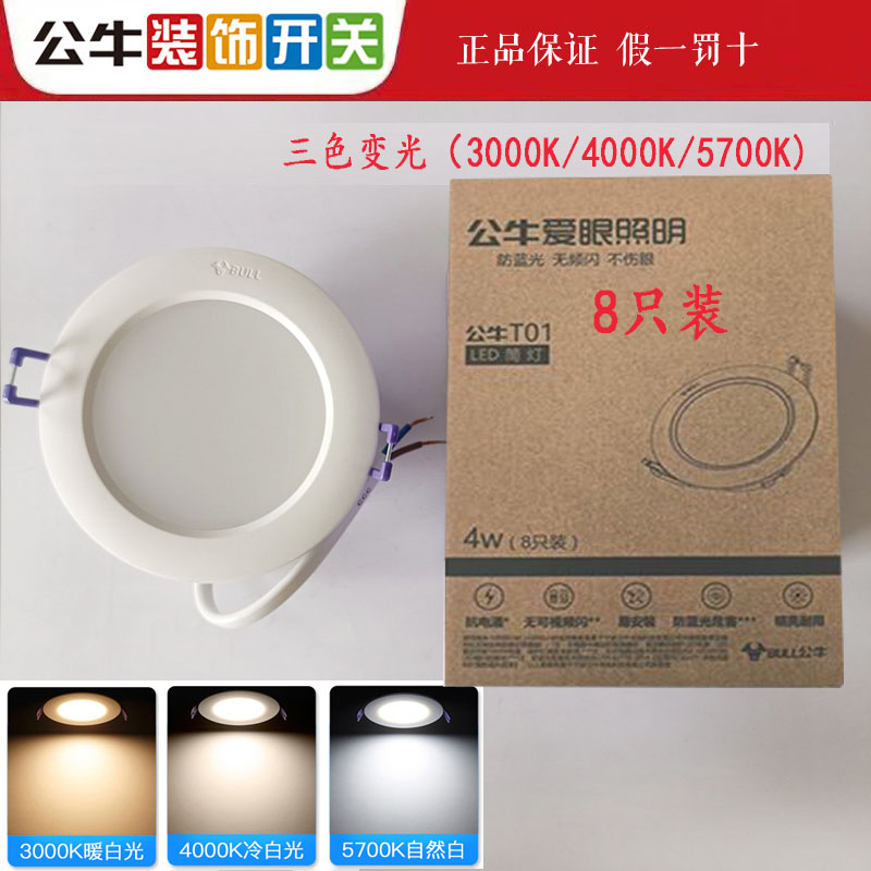 公牛4W筒灯LED天花射灯嵌入式三色筒灯孔灯走廊过道灯开孔75家用