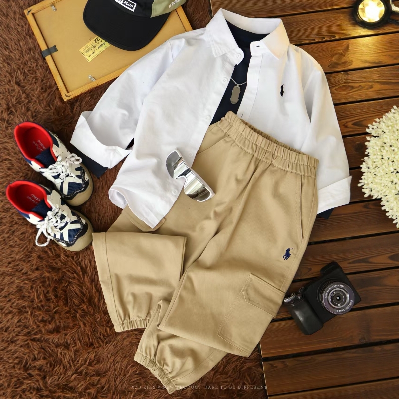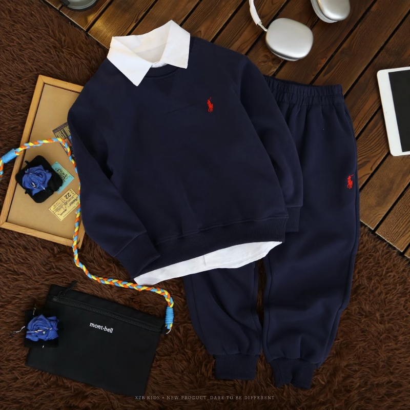 秋中大童T恤纯棉白衬衫套头男女童打底衫卫衣连帽外套运动工装裤