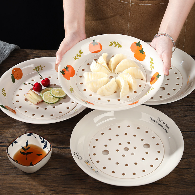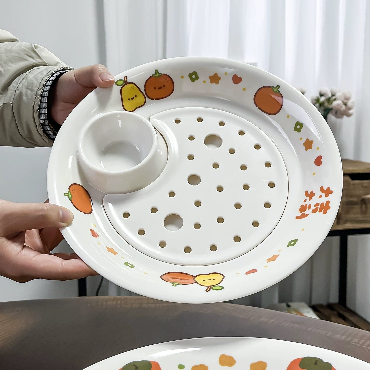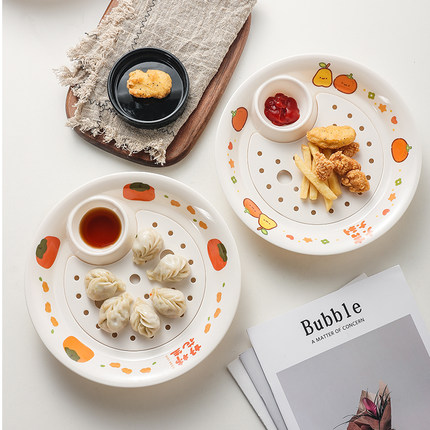 新款饺子盘沥水双层盘饺子专用盘食品级餐盘家用盘子餐具圆盘果盘