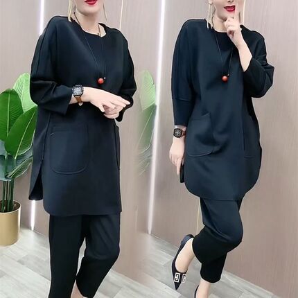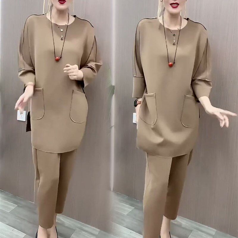 时尚套装2023年春秋新款洋气欧货宽松显瘦女漂亮上衣休闲裤两件套