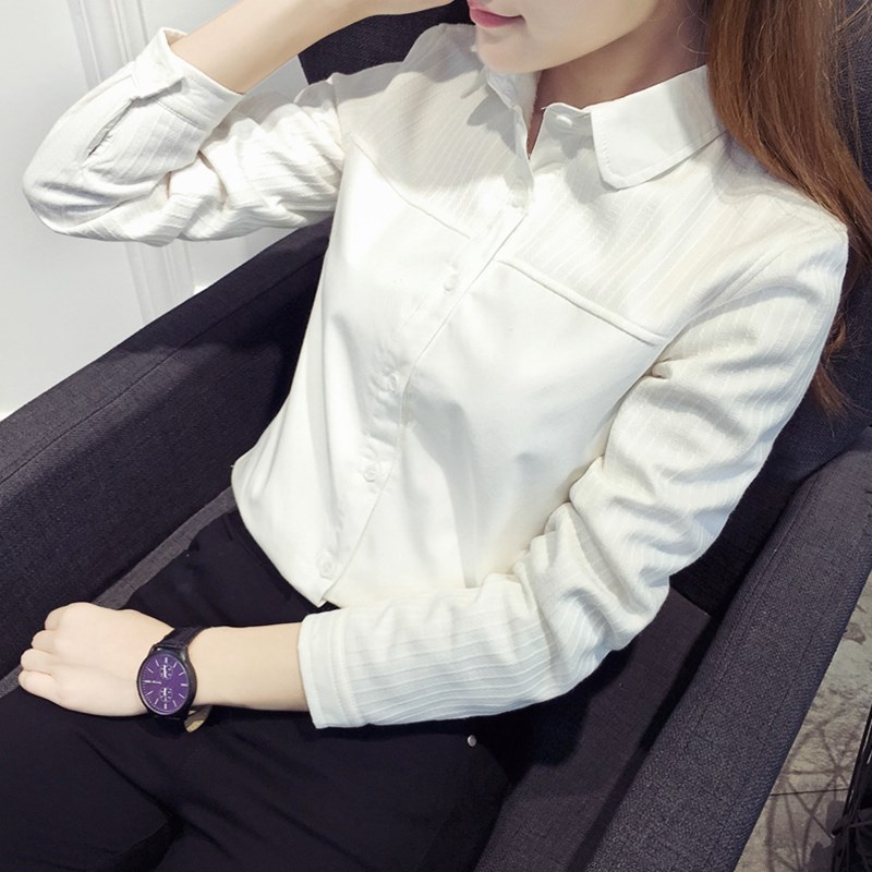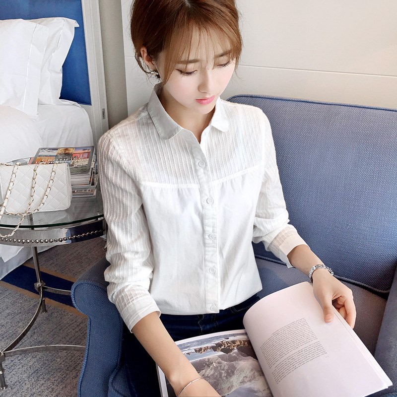 香港TIMO文艺百搭白衬衫女长袖秋冬娃娃领纯棉修身职业装打底衬衣