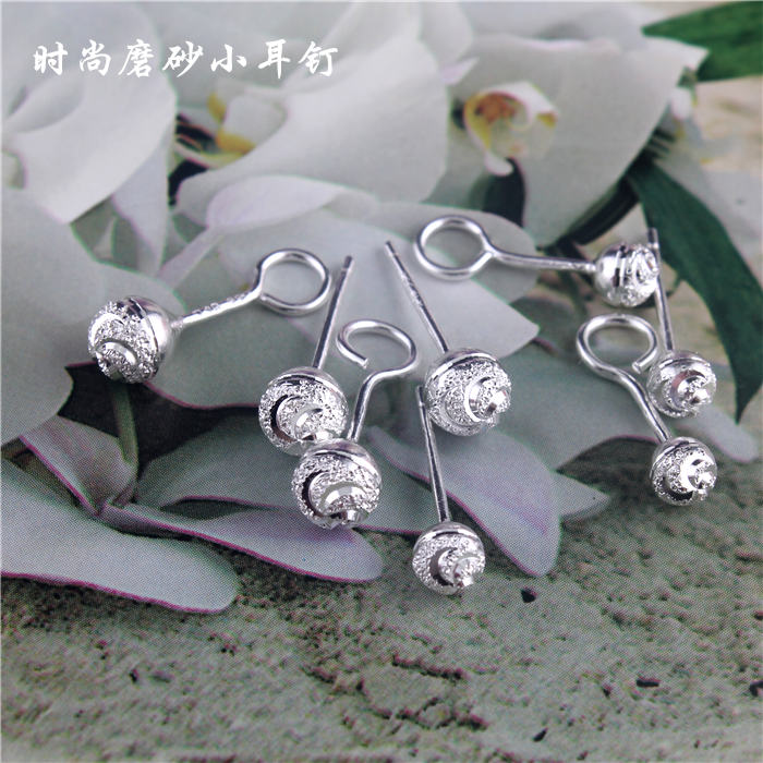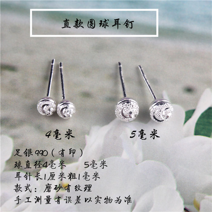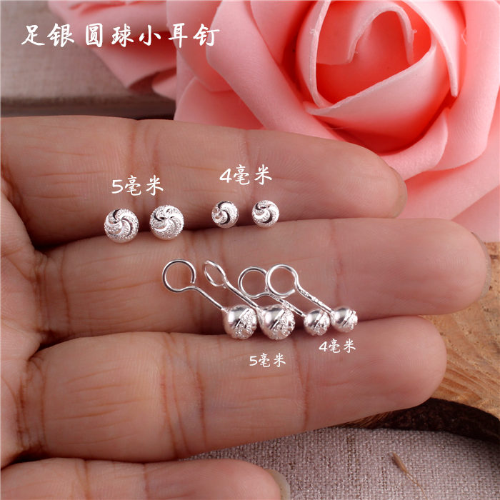 999纯银弯勾小耳钉女 豆豆圆珠满天星耳钉男 不过敏银耳环耳针饰