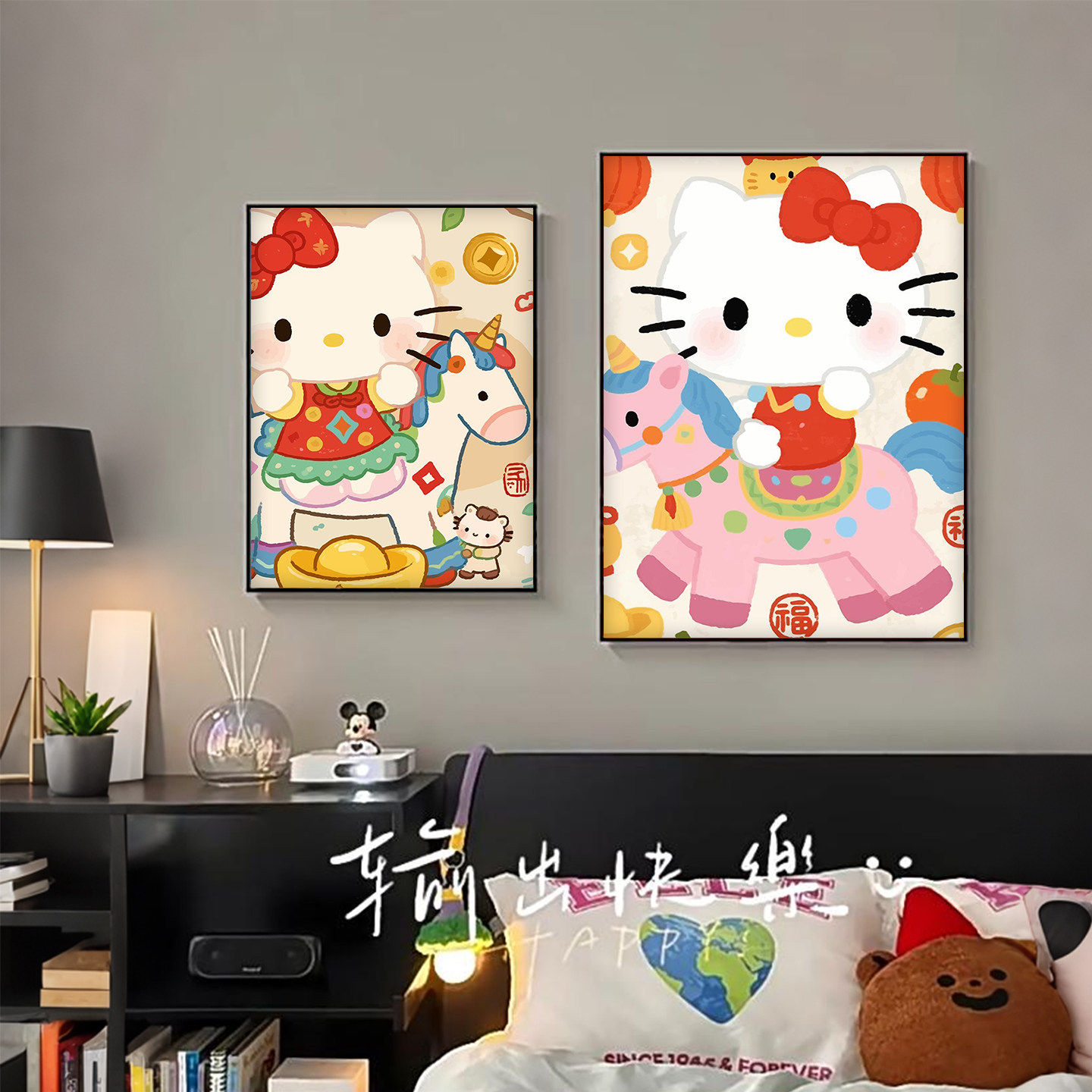 新年HelloKitty凯蒂猫数字油画diy填涂色手工绘卡通三丽鸥装饰画