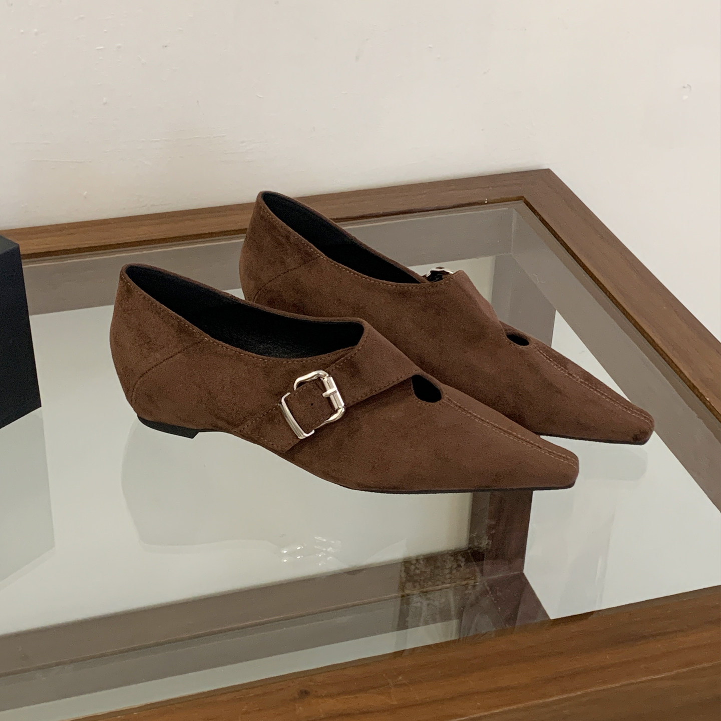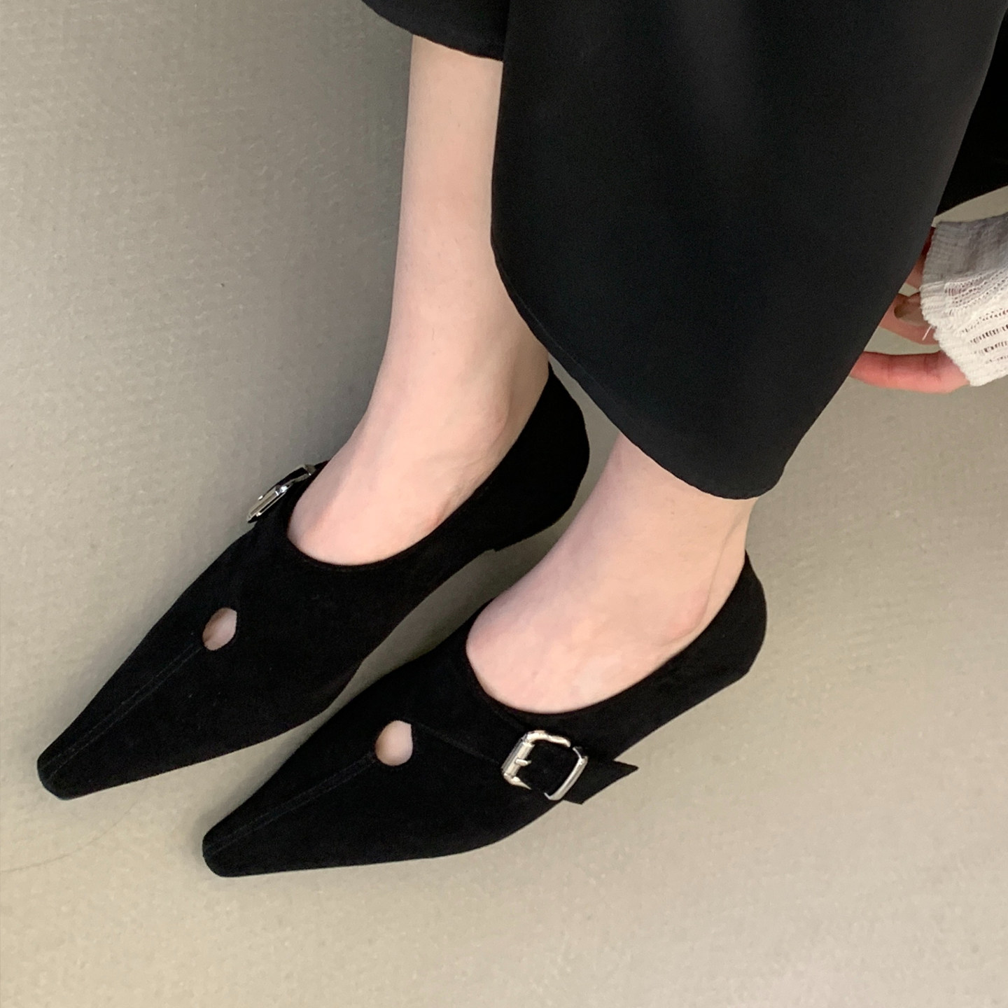 欧美时尚尖头皮带扣粗跟内增高中跟单鞋法式鞋四季女鞋休闲套脚鞋
